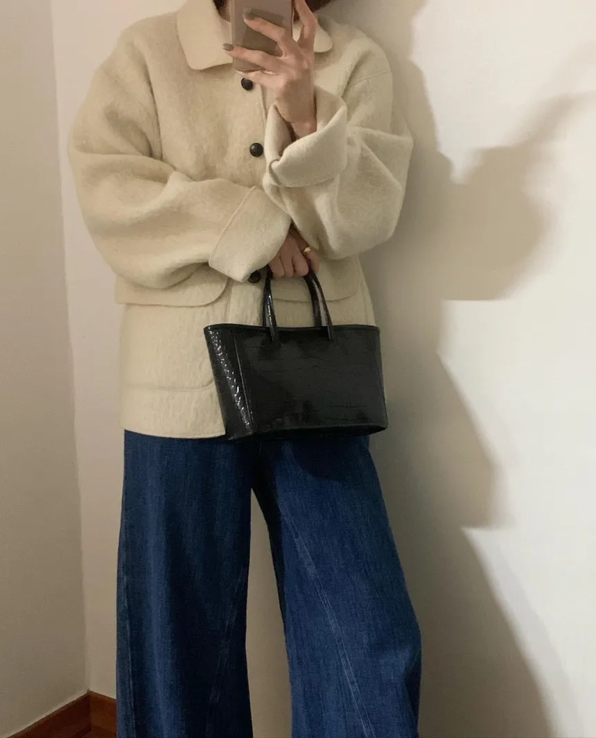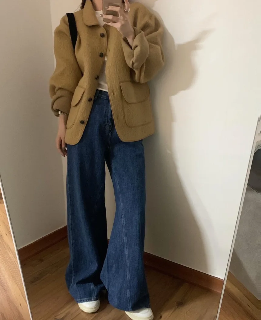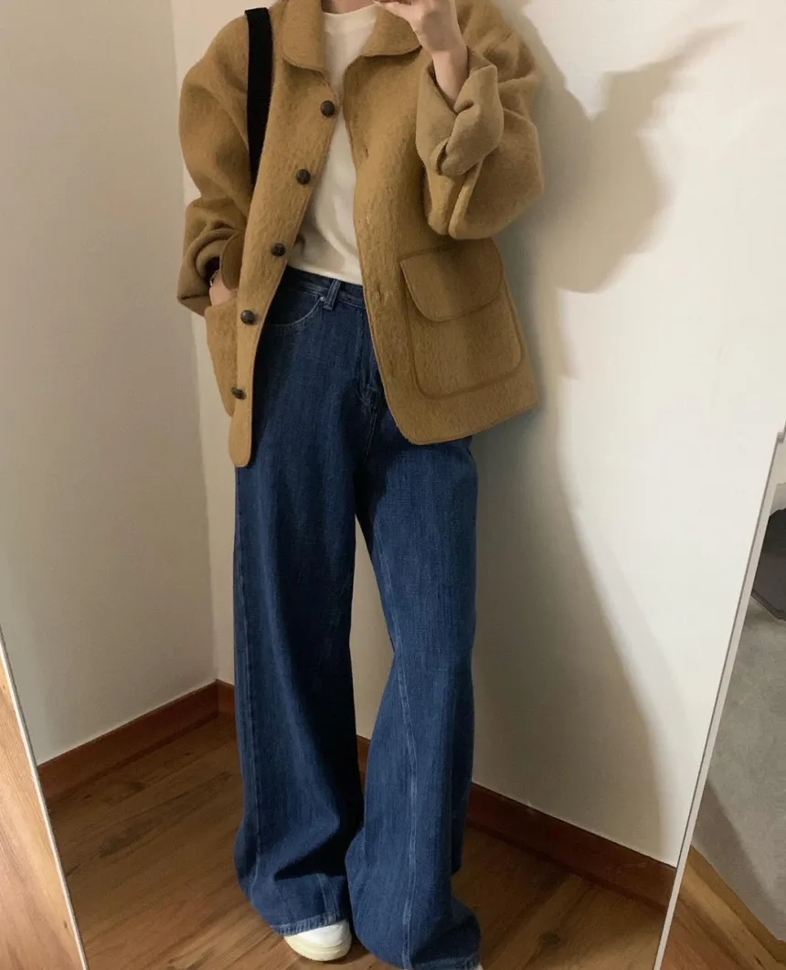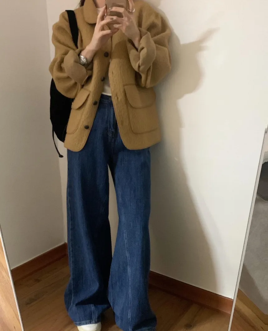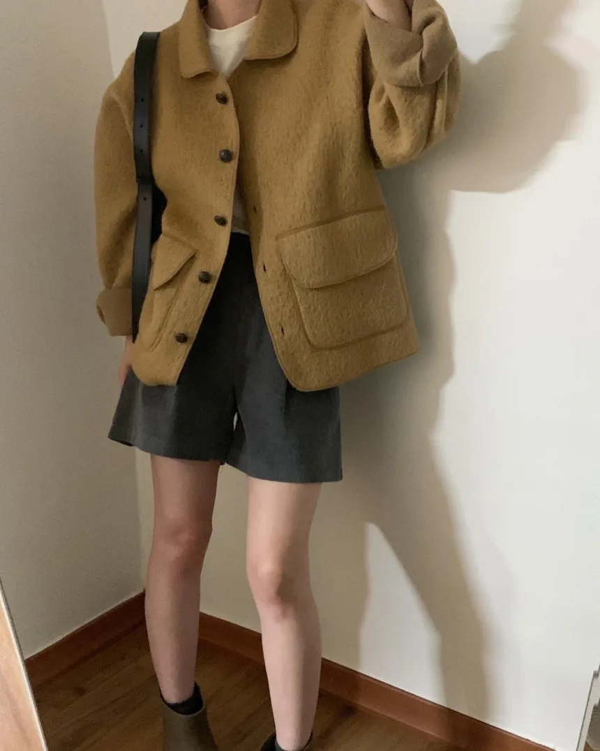 maoxiangshop - Chic Solid Woolen Jackets Loose Women New Warm 2025 Vintage Slim Winter Streetwear Elegant Fashion Daily Coats