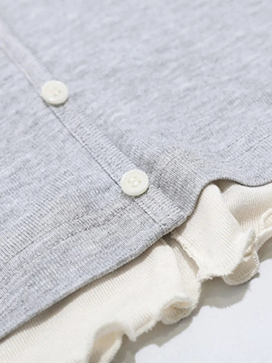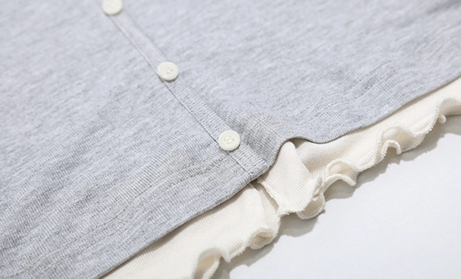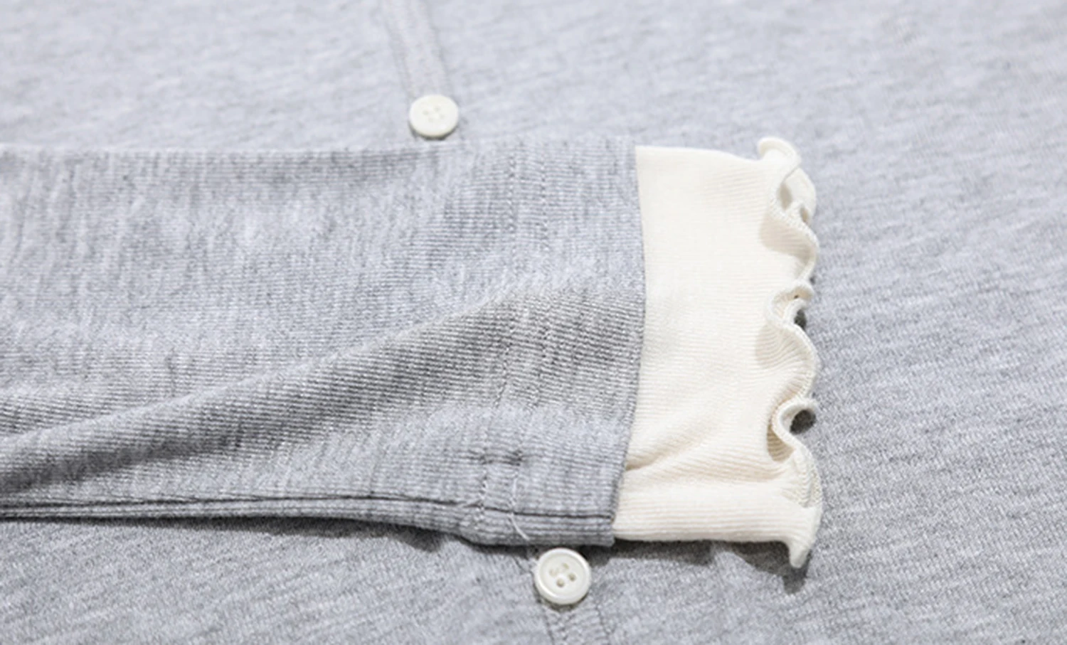 maoxiangshop - Contrast Fungus Trim Long Sleeve Autumn V Neck Single Breasted Slim Tops T-shirts Women Korean Fashion Simple T-shirts 2024 New