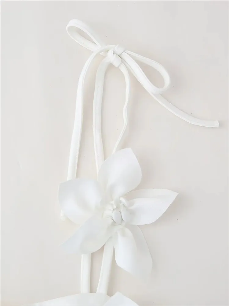 maoxiangshop - Cute Girl Fashion Flower Appliques White Elastic Short Tops Summer Chic Lady 2024 New Fashion Sling Vest