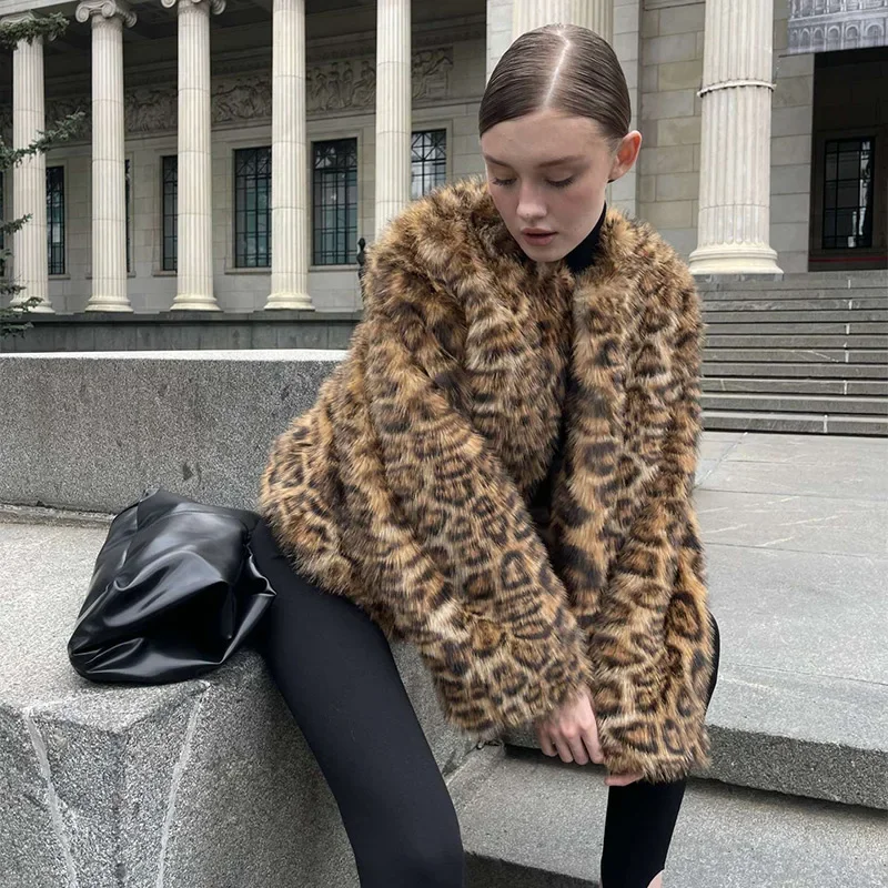 maoxiangshop  -  Elegant Faux Fur Women Coat Thicken Full Sleeve O Neck Lady Short Jacket 2024 Autumn Winter Warm Highstreet Female Outwear