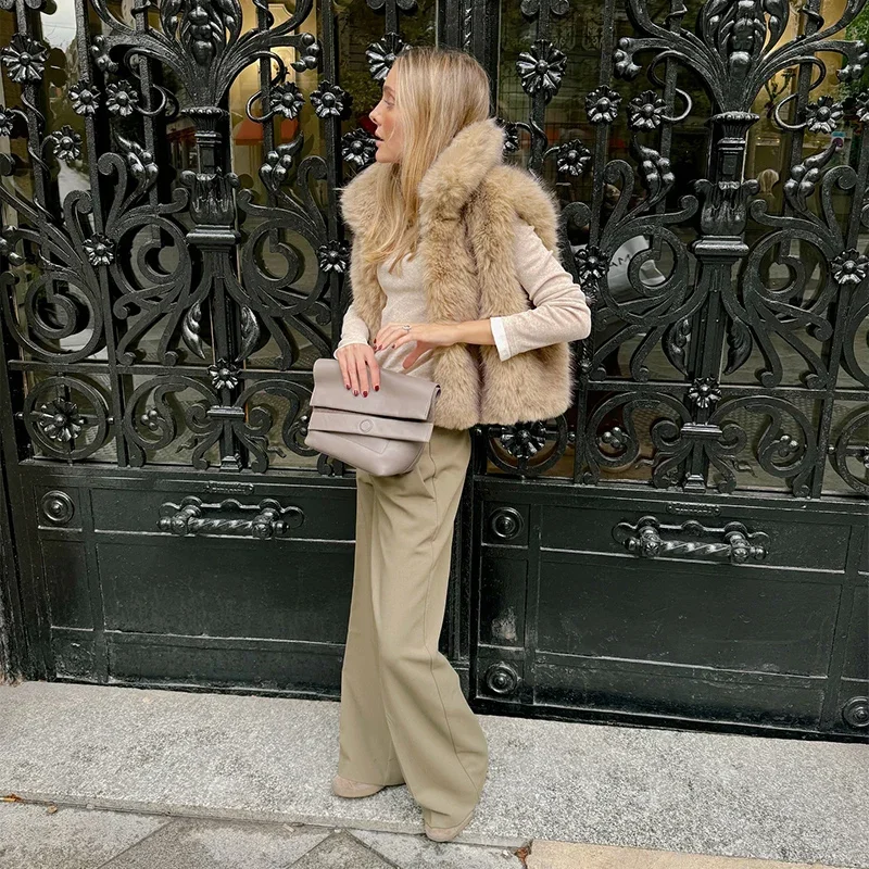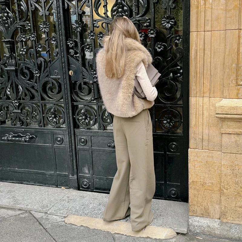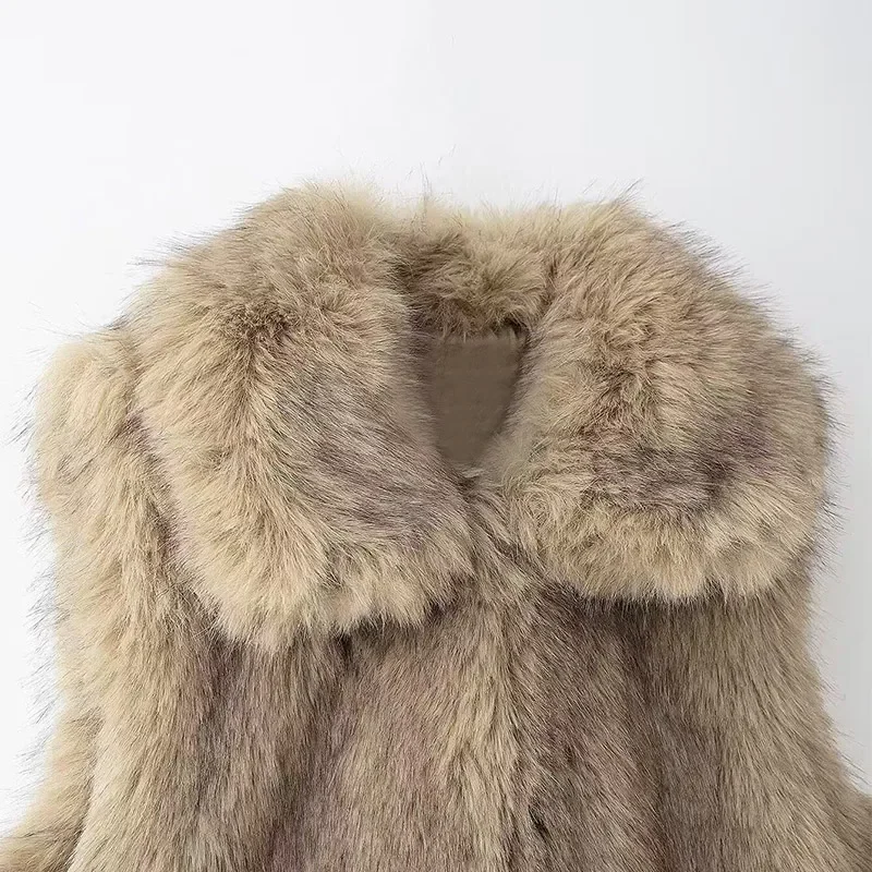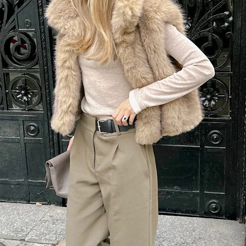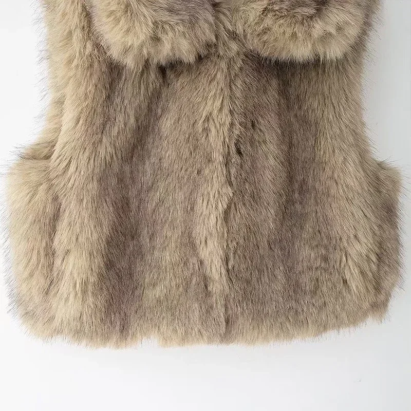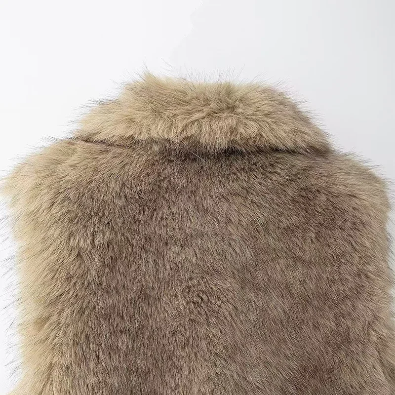 maoxiangshop - Elegant Faux Fur Women Vest Thicken Lapel Single Breasted Warm Lady Sleeveless Coat 2024 Fashion Autumn Winter Female Outwear