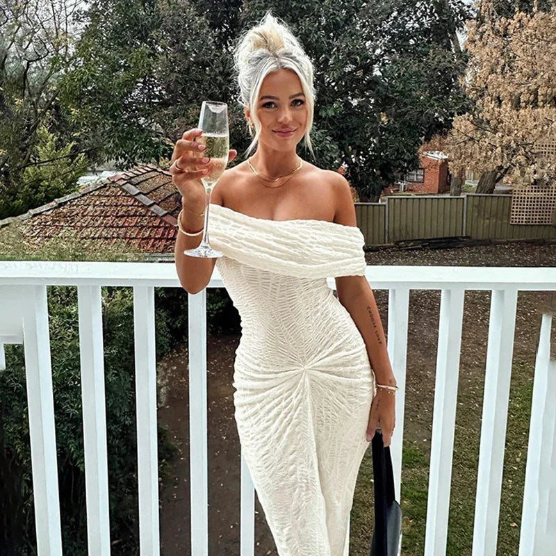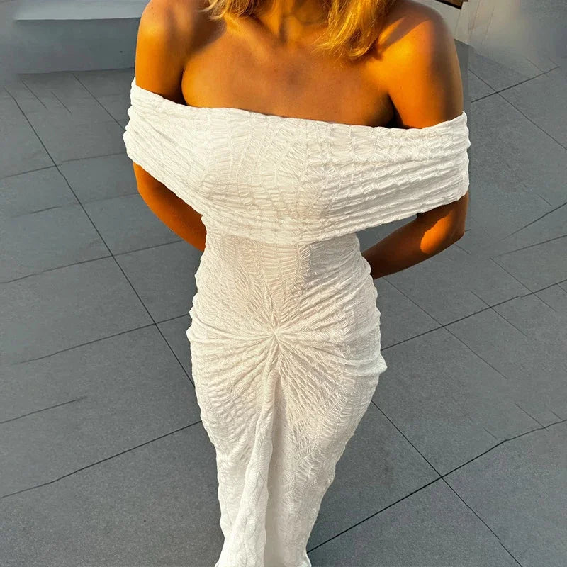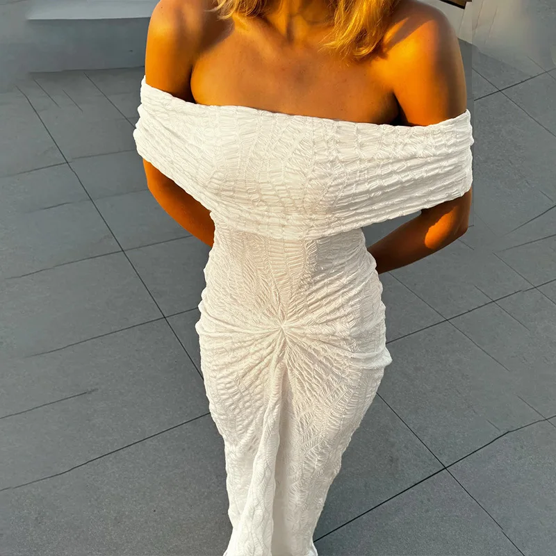 maoxiangshop - Elegant Textured One-shoulder Ruched Dress For Women Autumn New Sleeveless Tube Top Maxi Dress Lady Holiday Party Clothes