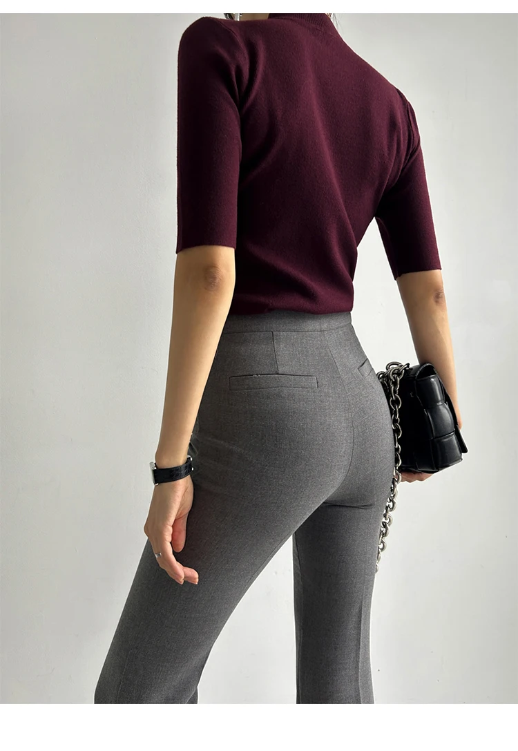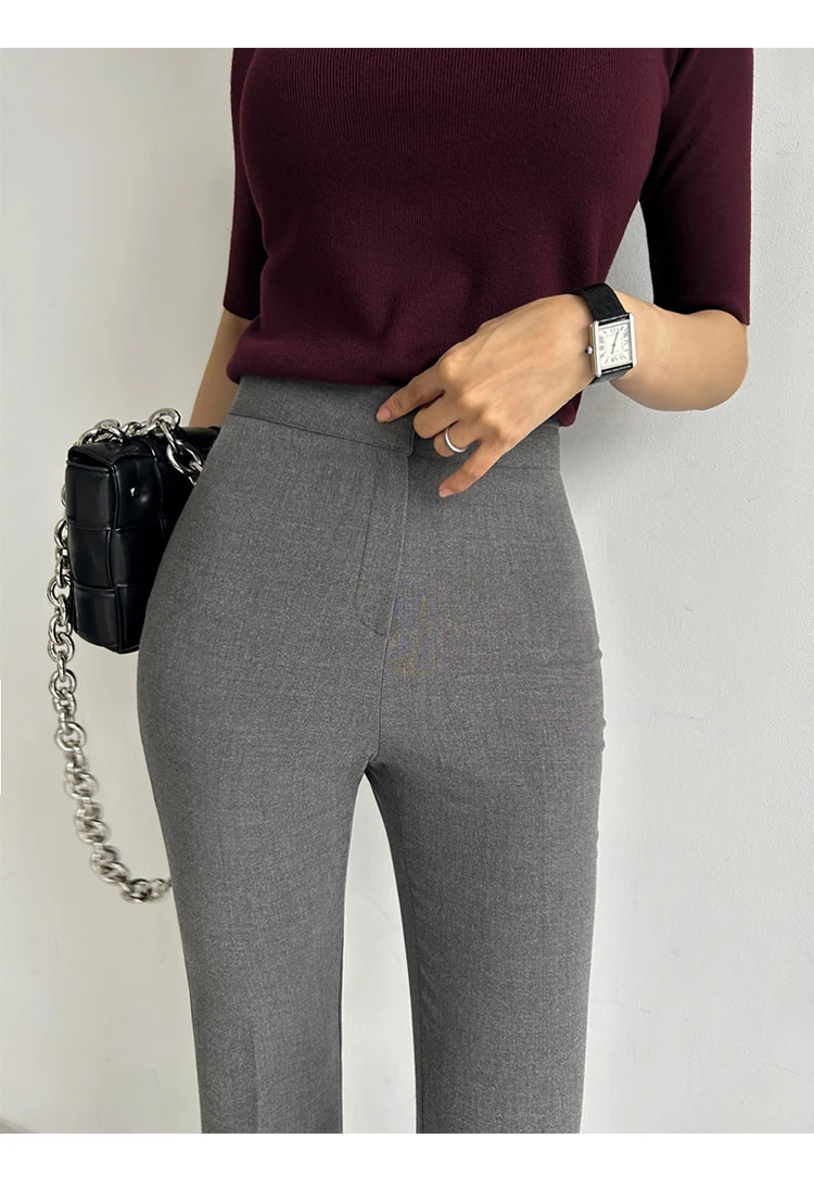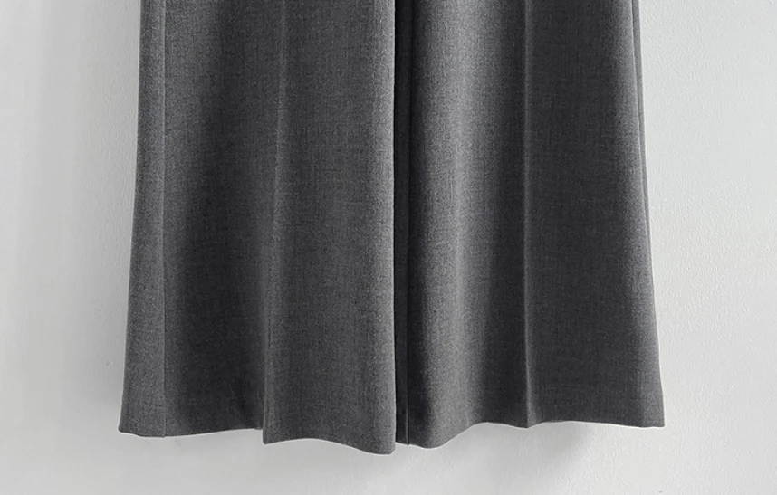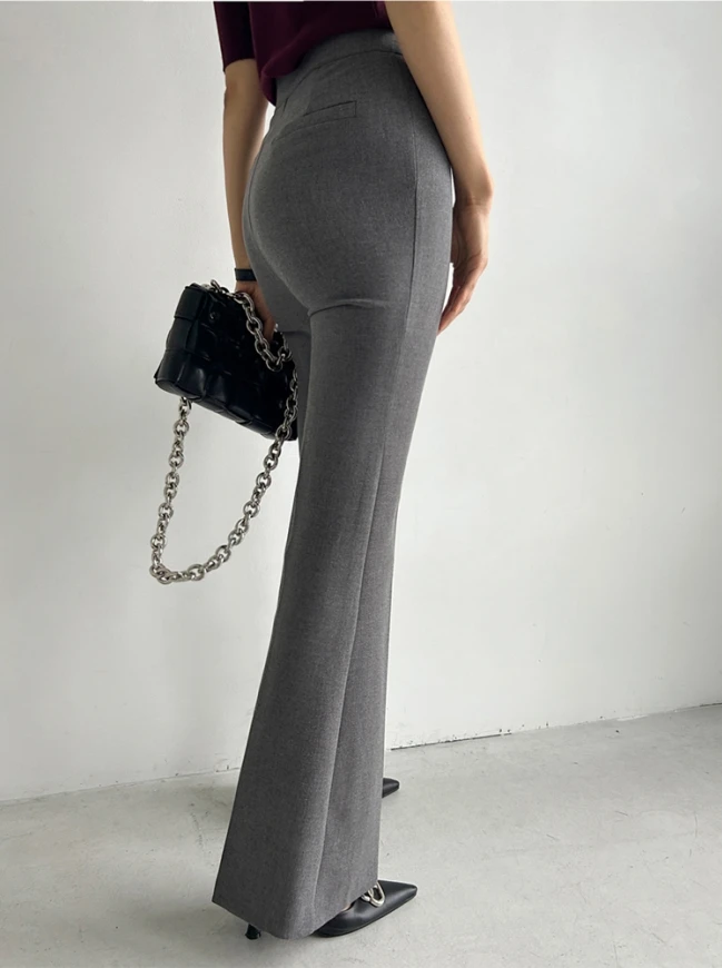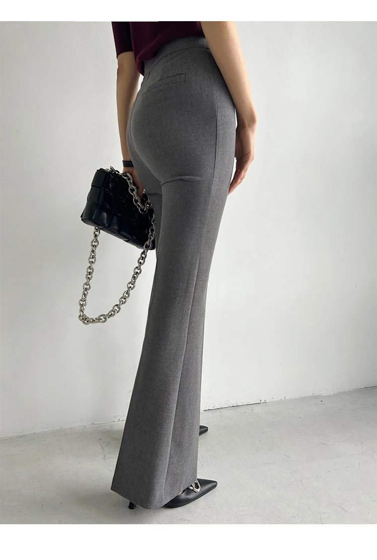 maoxiangshop - Elegant Women Grey Flare Suit Pants Loose 2024 Autumn Office Ladies Korean High Waist Pockets Casual Trousers