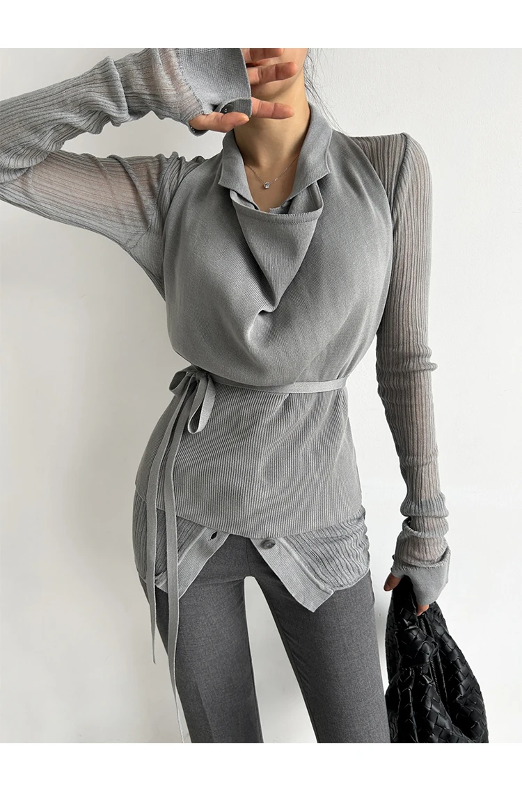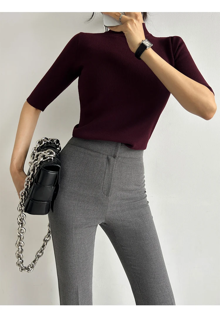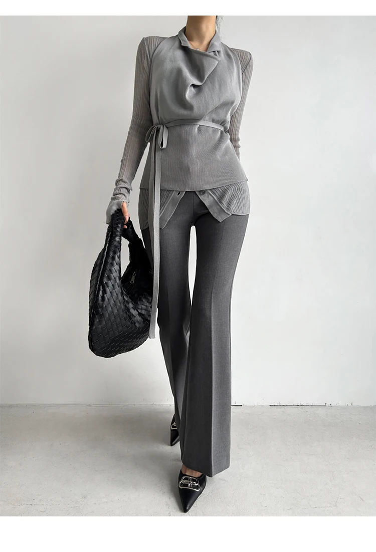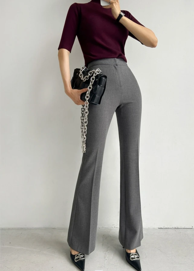 maoxiangshop - Elegant Women Grey Flare Suit Pants Loose 2024 Autumn Office Ladies Korean High Waist Pockets Casual Trousers