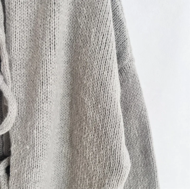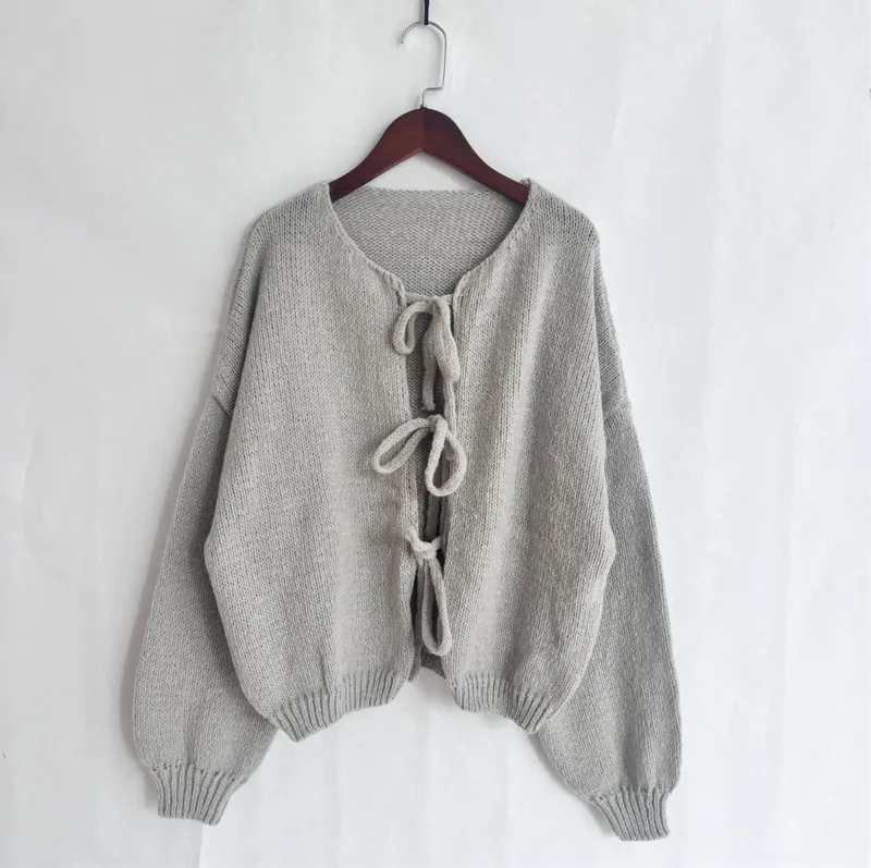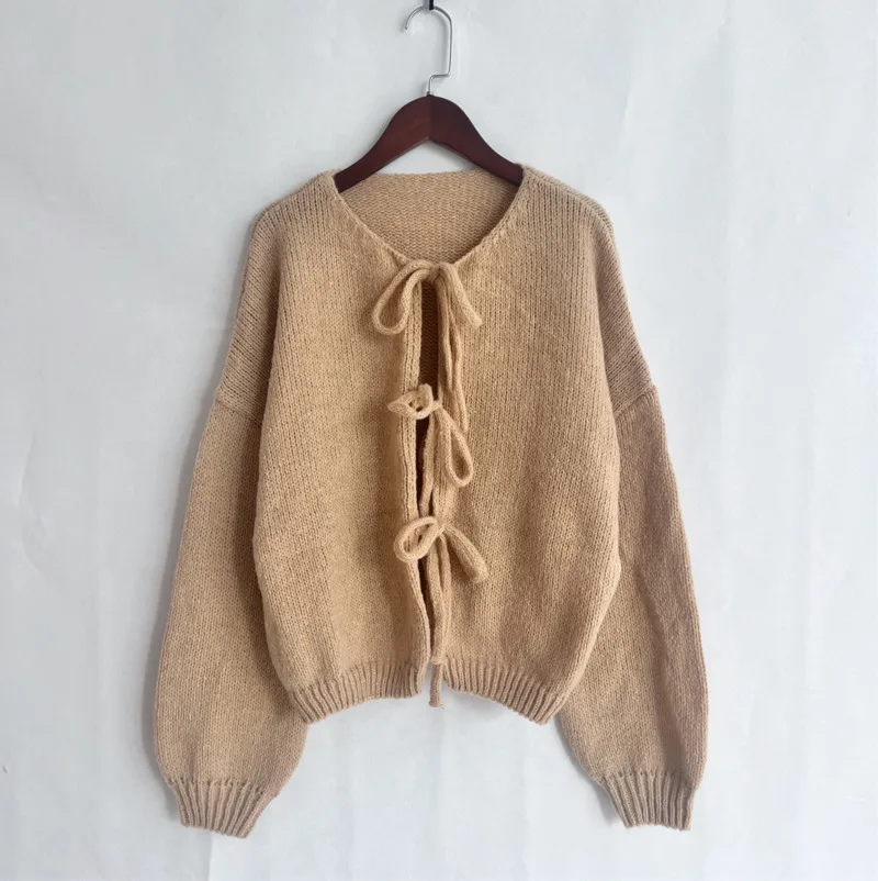 maoxiangshop - Fashion Lace Up Bow Knitted Cardigan Woman O Neck Long Sleeve Hollow Out Sweater Coat Autumn Female Casual High Street Knitwear