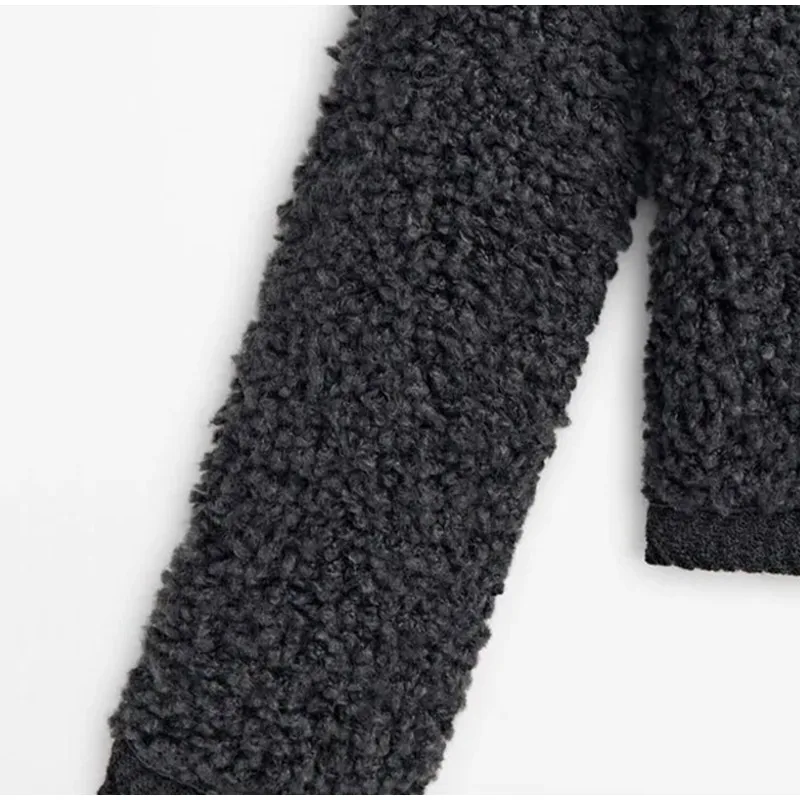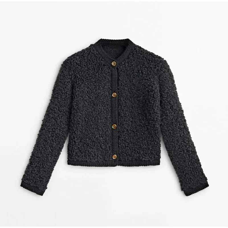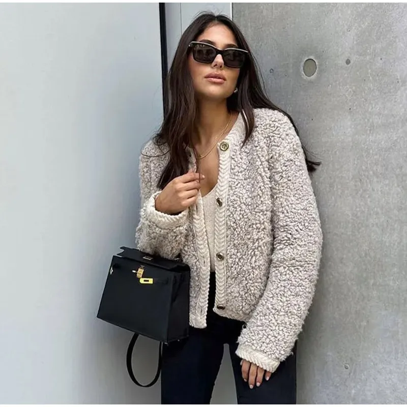 maoxiangshop - Fashion Lamb Wool Women Short Coats O-neck Long Sleeve Single Breasted Jackets Female Autumn Winter Office Lady Commuting Coat