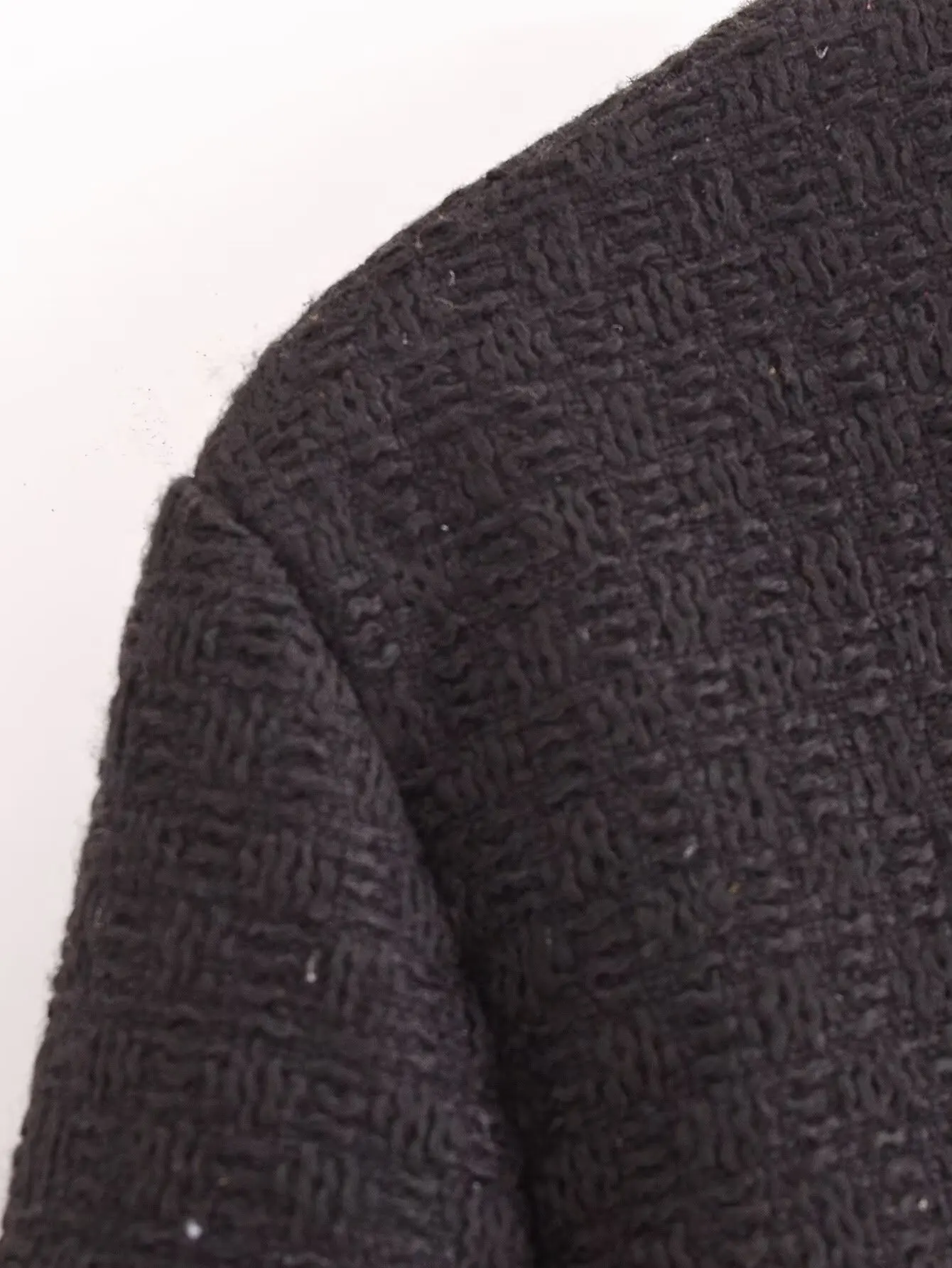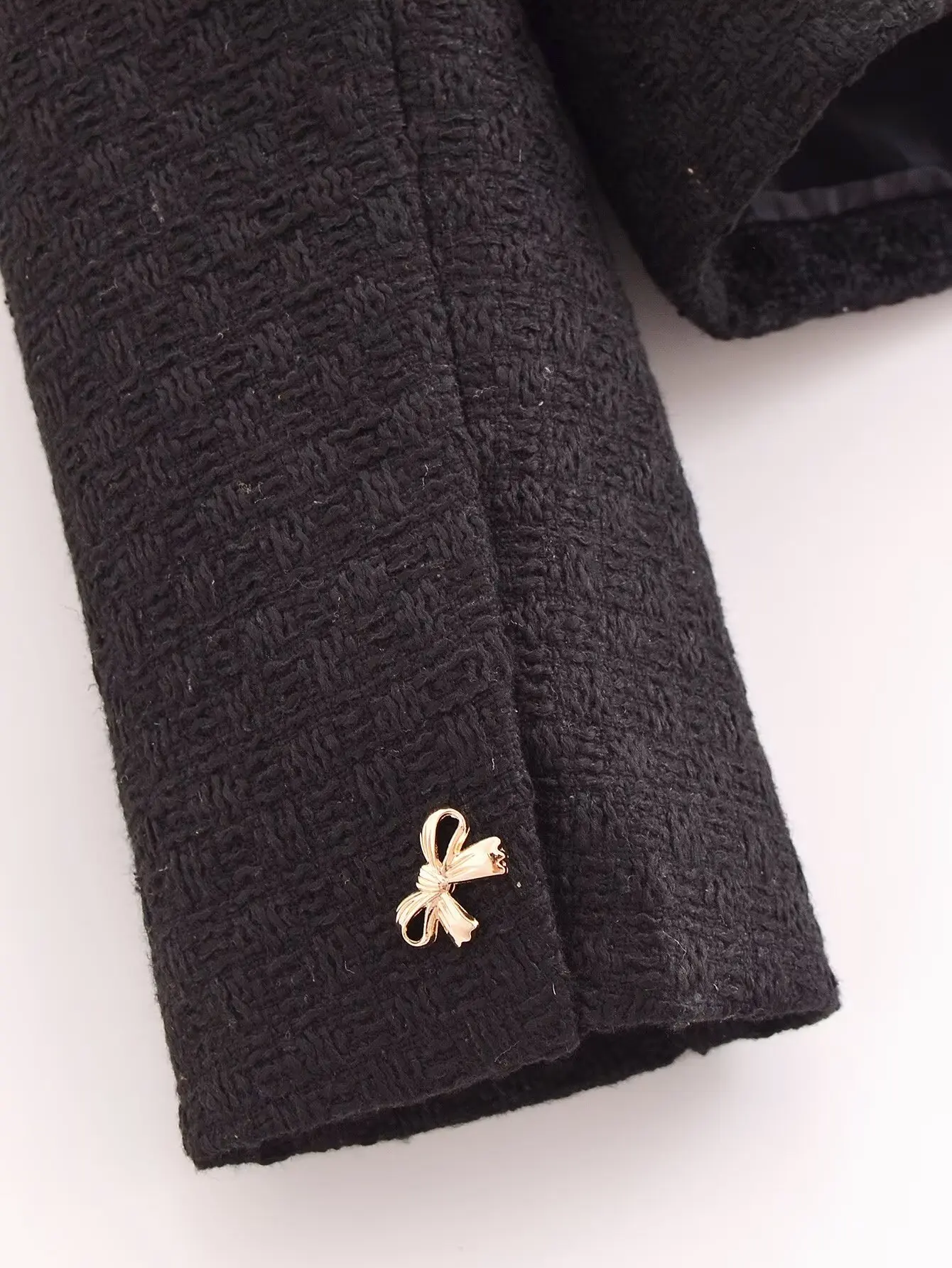 maoxiangshop - Fashion O-Neck Women Jacket Coat 2024 Female Autumn Chic Bow Button with Pockets Outerwear Lady New Black Jackets Coats