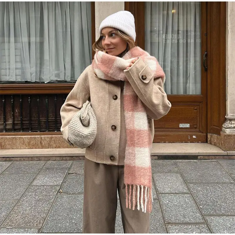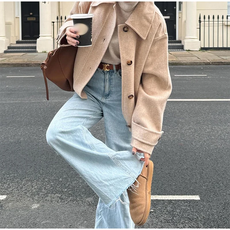 maoxiangshop - Fashion Single Breasted Lapel Collar Woolen Coat Women Long Sleeve Short Autumn Winter Jacket 2024 Female Elegant Chic Outerwear