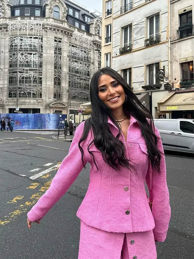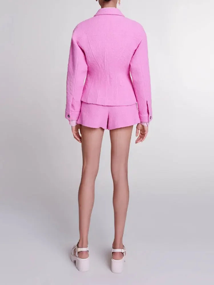 maoxiangshop - Fashion Women Single-breasted Tweed Slim Jacket Elegant Lapel Long Sleeved Demi-season Cropped Jacket Autumn Bomber Outerwears