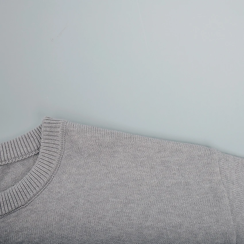 maoxiangshop - Gray Warm Knitted Sweater Women Long Sleeves Casual Round Neck Solid Pullover Tops Autumn Winter Office Lady Sweater