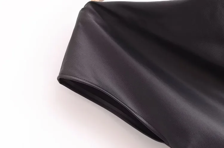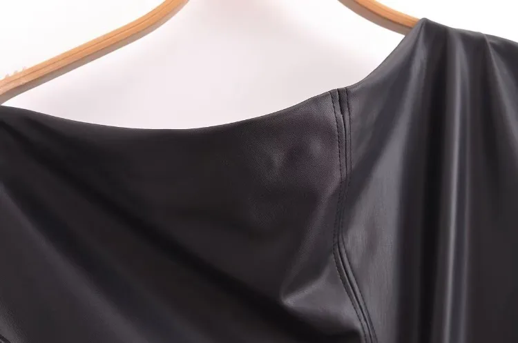 maoxiangshop - High Street Black Asymmetrical Faux Leather Women Dress 2024 New Autumn Women Sexy Zip-up Slim Vintage Dress Female Party Dress