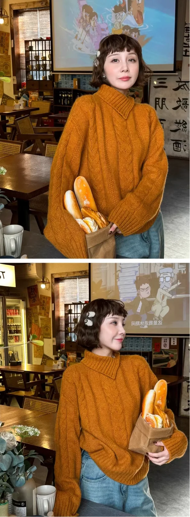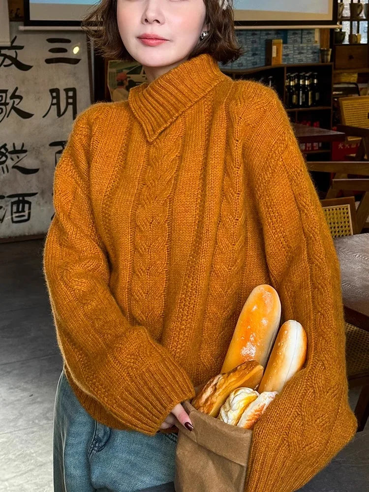 maoxiangshop - Irregular Neckline Fried Dough Twists Sweater Women's Autumn And Winter Temperament Semi High Collar Short Knitting Top