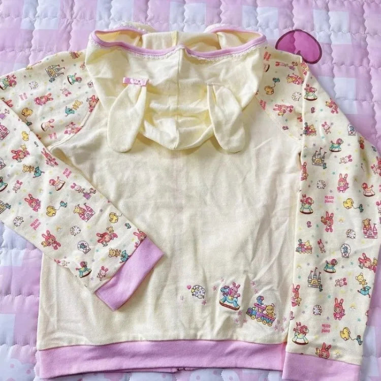 maoxiangshop - Japanese Cartoon Print Rabbit Ear Hooded Coats Women Y2k Hoodies Harajuku Kawaii Jacket Aesthetic Grunge Sweatshirt Cute Tops