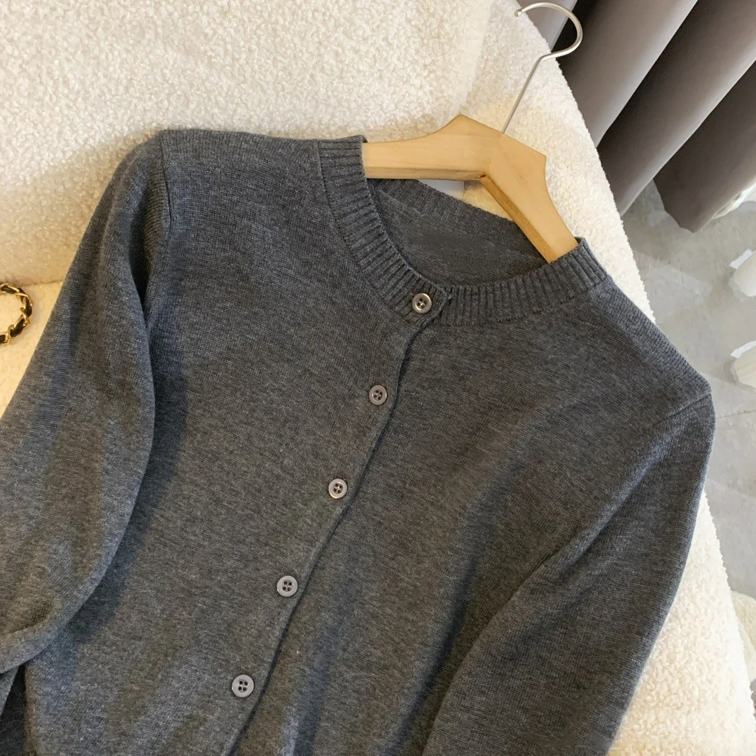 maoxiangshop - Knitted Slim Cardigan Women's Autumn Solid Single-Breasted Long-Sleeved Cardigan Top Casual Loose Short Knitted Cardigan