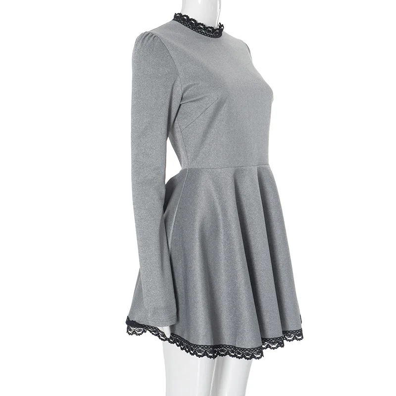 maoxiangshop - Lace Splice Elegant Mini Dress Female Autumn Winter New Contrast Color Office Woman Dress Long Sleeve High Waist Clothes