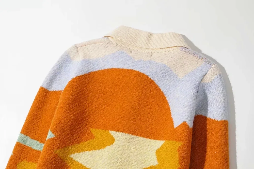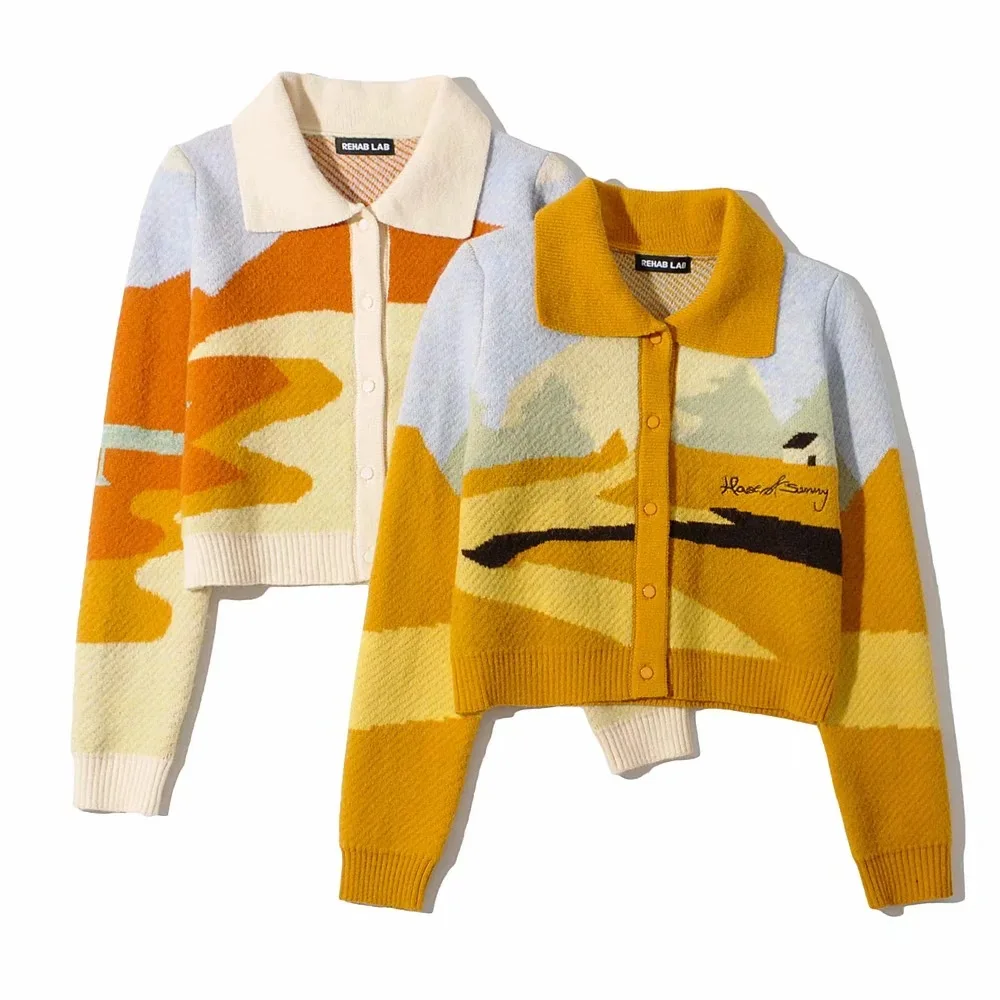 maoxiangshop - Letter Embroidery Harajuku Knitted Single Breasted Cropped Cardigan Women Autumn Long Sleeve Turn Down Collar Sweater Coat
