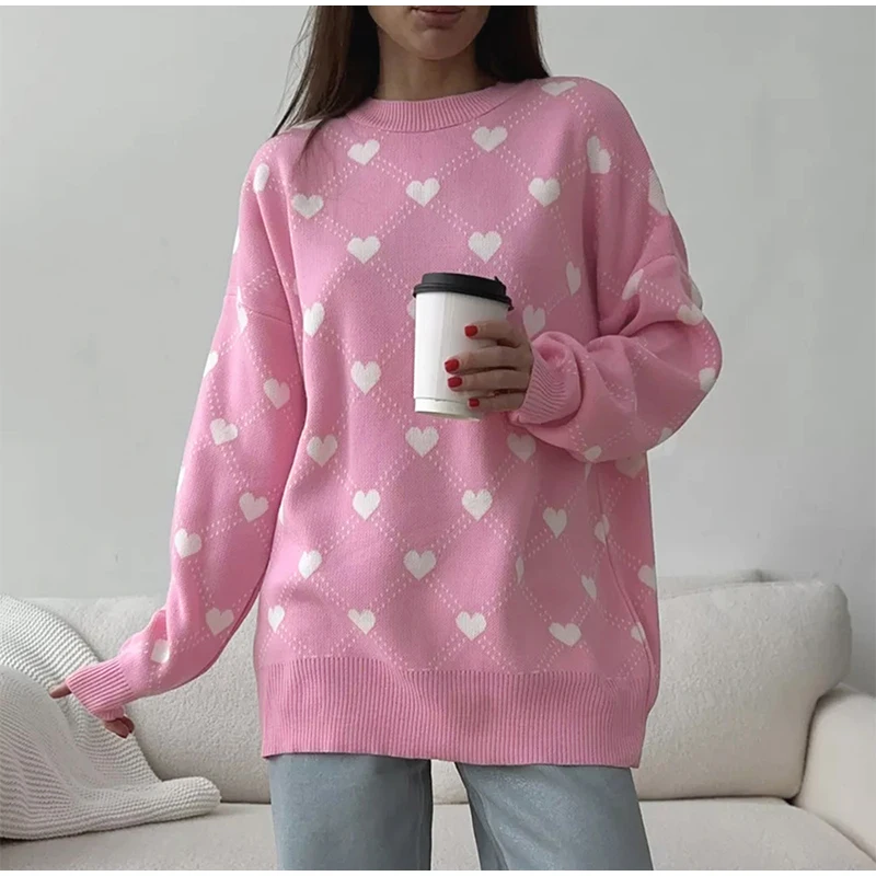 maoxiangshop - Loose Knit Women's Sweater Fashion Jacquard Long Sleeve Top Pullover 2024 Autumn New Casual Lady Tops Knitwear Streetwear Jumper