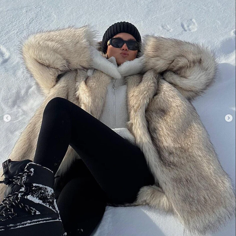 maoxiangshop - Luxury Brand Fluffy Faux Fur Jacket Women 2024 Winter Long Thicken Warm Gradient Fox Fur Coat Streetwear Furry Overcoat