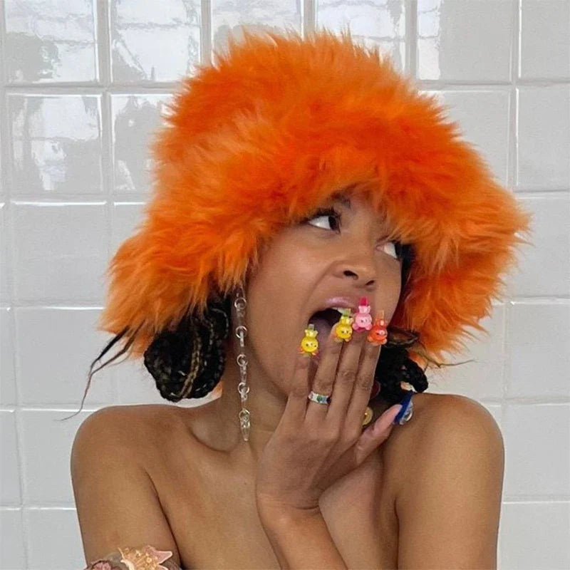 maoxiangshop - Luxury Ins Hot Y2k Girls Faux Fox Fur Bucket Hat Women Winter Warm Rabbit Fur Plush Fisherman Hat Cap Festival Party Ski Panama