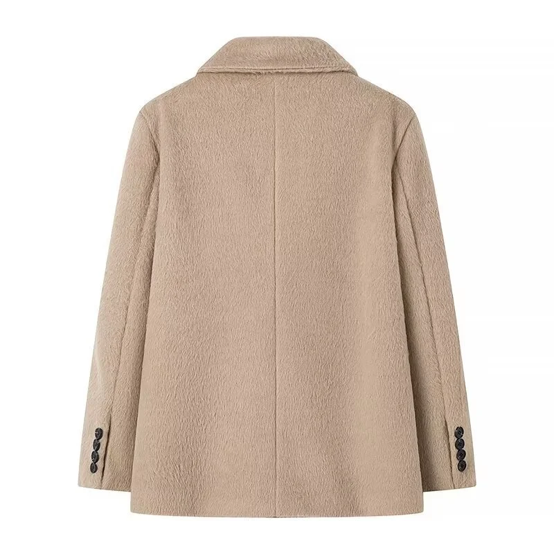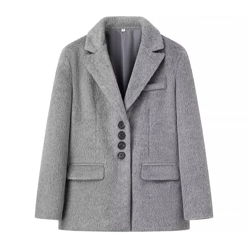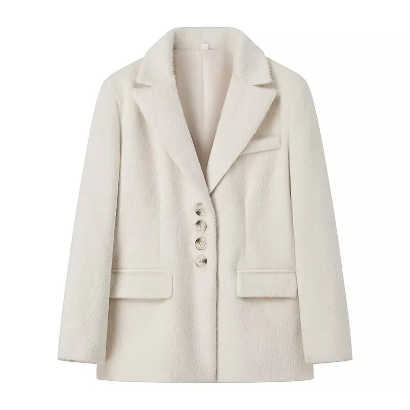 maoxiangshop - New Women's Collar Plush Jacket Elegant Loose Chic Coat Winter Thicken Fashion Office Ladies Warm Button Plush Jacket