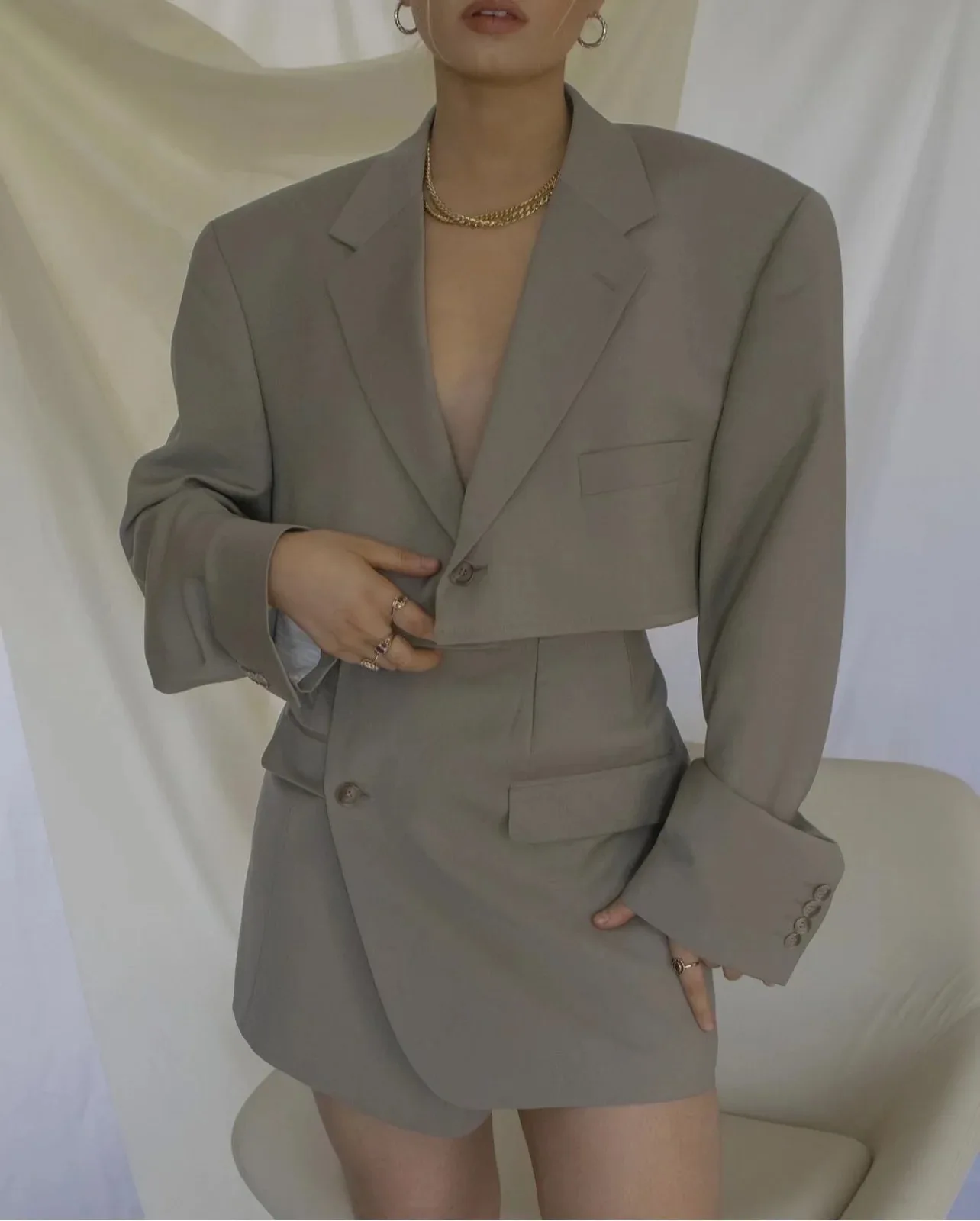 maoxiangshop - One Button Small Suit+high Waisted Skirt Set For Women 2024 Spring Autumn New Fashion Female Clothing
