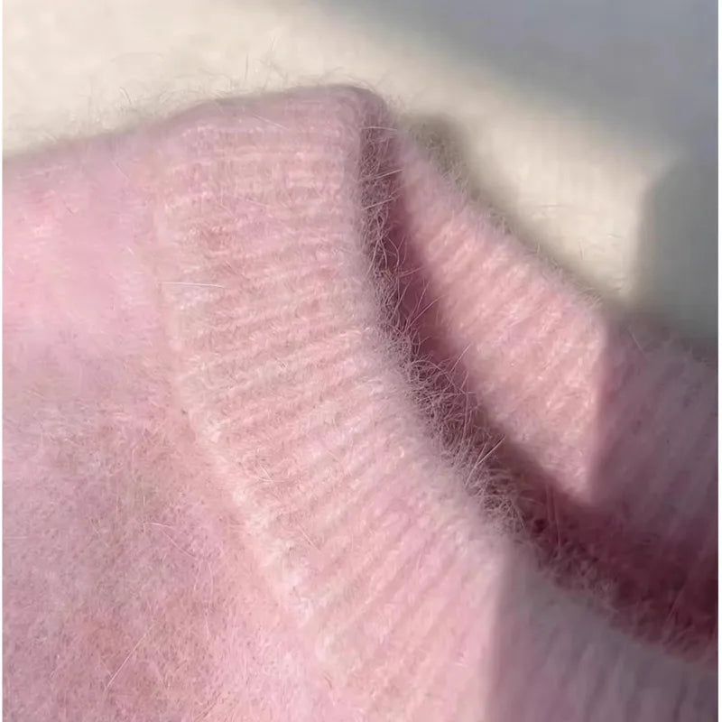 maoxiangshop - Pink Soft Knitted Sweater Women 2024 Autumn Winter New Loose Long Sleeved Top Solid Color Simple O Neck Pullover Coat Knitwear