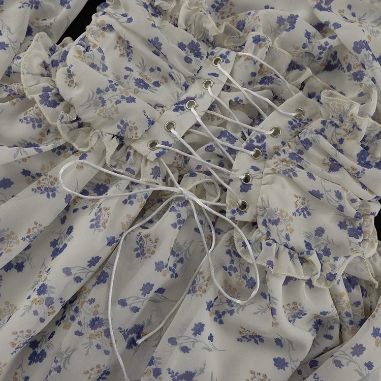 maoxiangshop - Ruffled V-Neck Printed Mini Dress Female Bandage Autumn Fashion Lace-Up Contrast Drawstring Dress For Women Party Dress