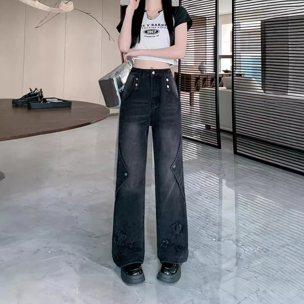 2000s fashion 2024 New American Style Retro Brushed Star Skinny Jeans Women's Summer Slim Fit Slimming Straight Mop Pants Women