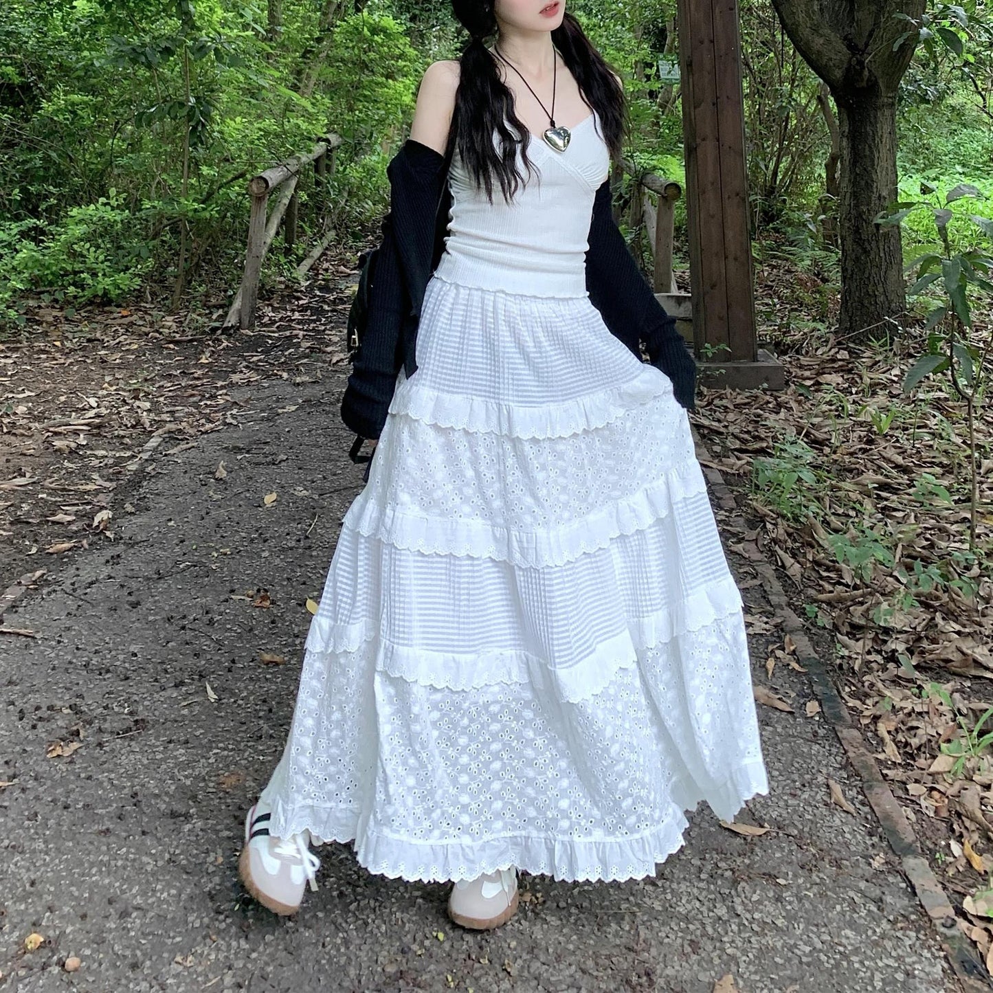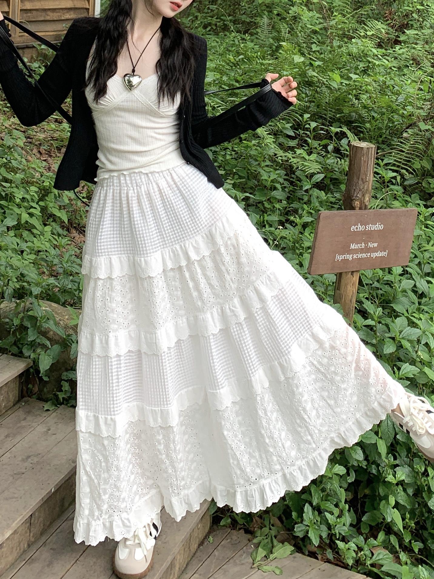 church outfit White Gentle Style Skirt Women's Early Spring High Waist Umbrella Skirt A- Line Skirt Long Skirt Cake Skirt Design Lace Skirt