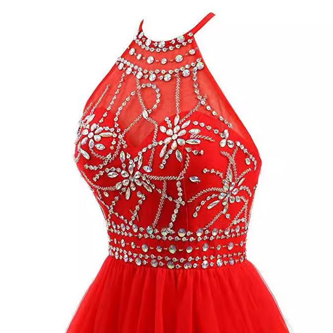 dresses Slim-Fit Small Dress Halter Short Bridal Wedding Dress Banquet Evening Dress Lace New Red Women