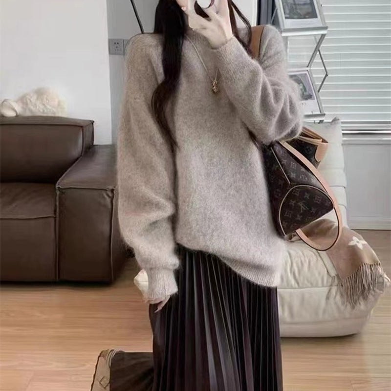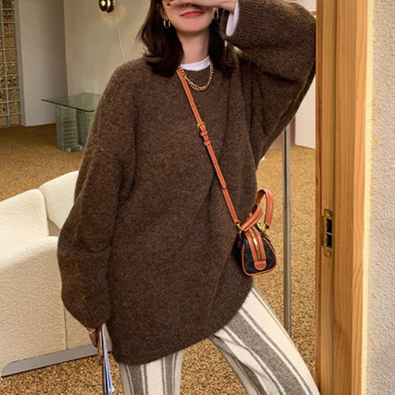 maoxiangshop-shop fall outfits 2024 Autumn and Winter Japanese Style Fresh Soft Milk Lazy Style Sweater Women's Solid Color Base Solid Color Casual Loose Knitted Pullover