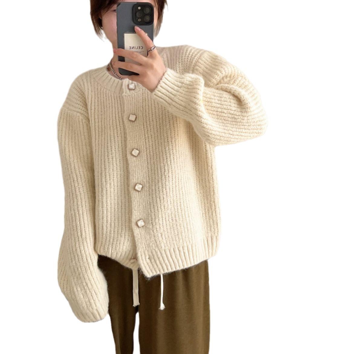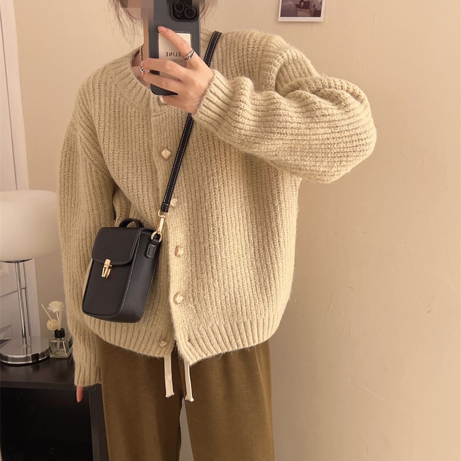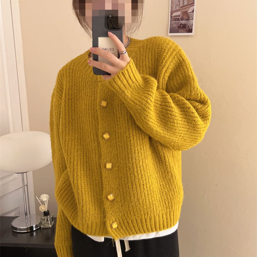 maoxiangshop-shop fall outfits 2024 Lazy Style Korean Style Loose Sweater Coat Autumn and Winter New Women's Clothing Solid Color Thickened Niche Knitted Cardigan