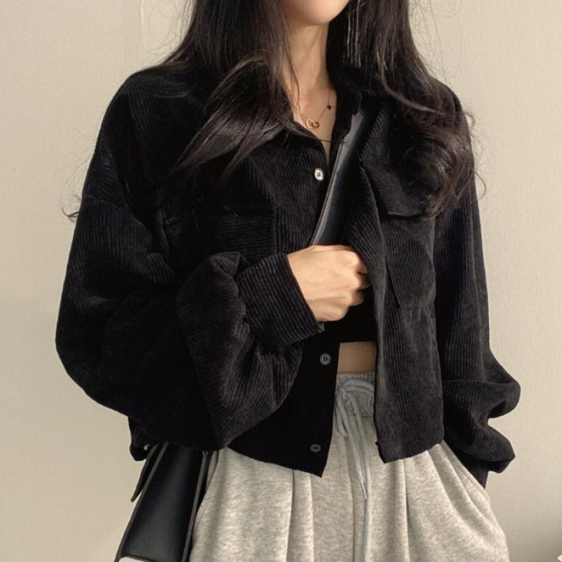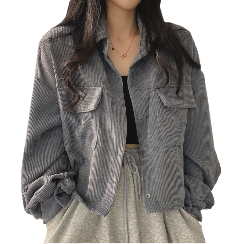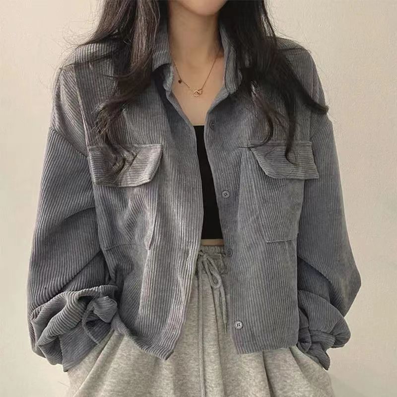 fall outfits aesthetic Corduroy Shirt Chic Spring French Retro All-Match Single-Breasted Lapel Long Sleeve Coat for Women