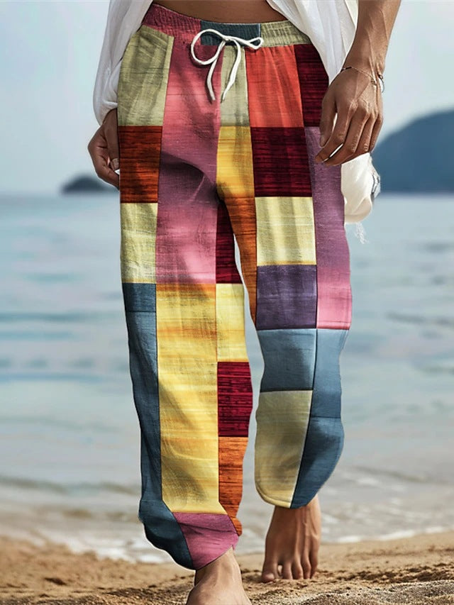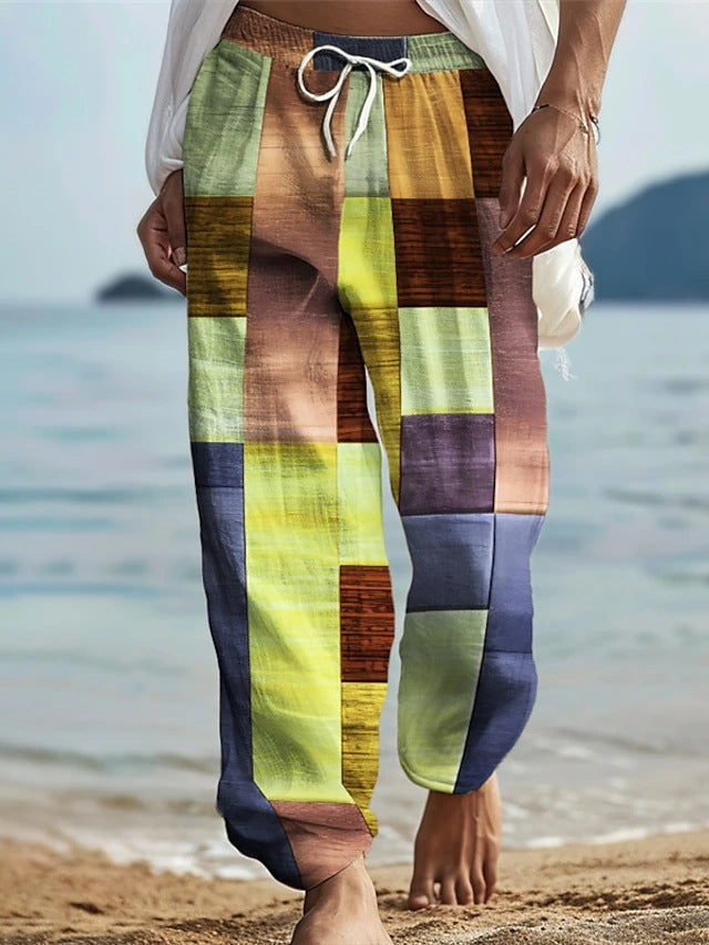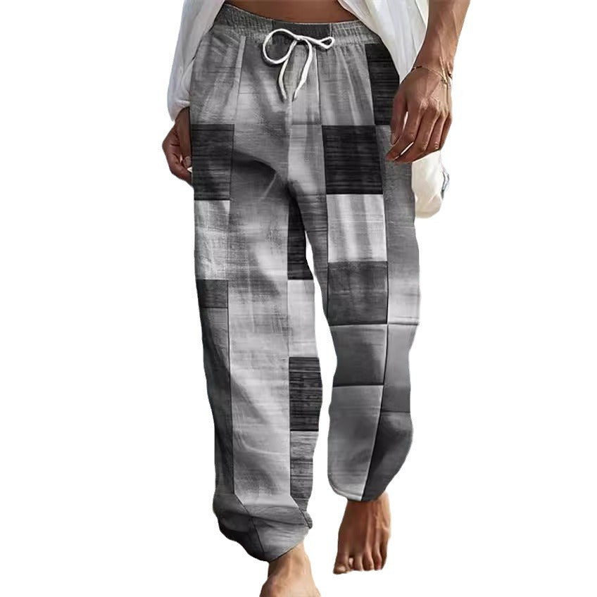 maoxiangshop fall outfits aesthetic New Men's Striped Printed Wide-Leg Pants 3D Printed Loose Casual Beach Trousers