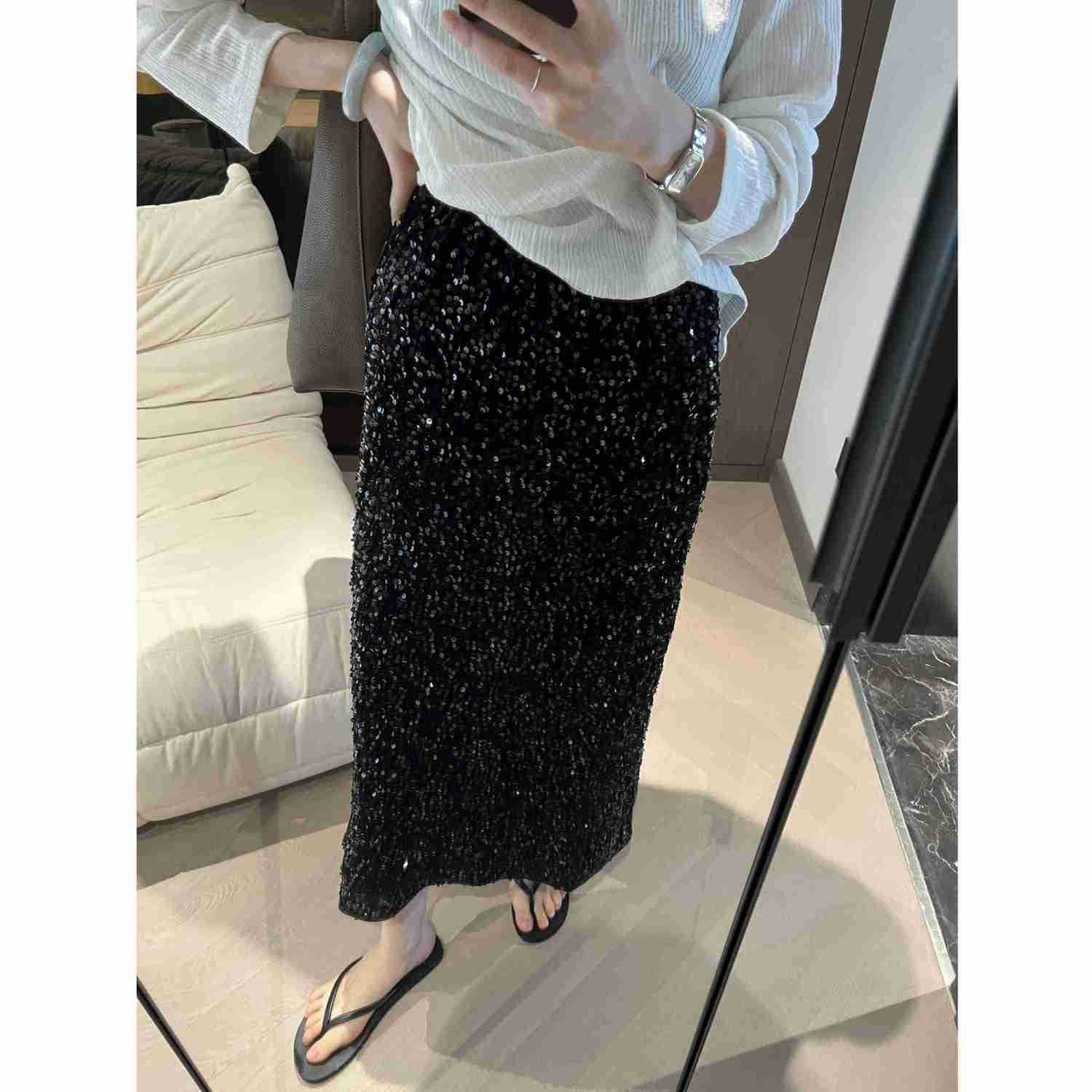 outfit ideas 2024 New Fashion High Waist Slimming Sequined Skirt Women's Elastic Waist Stretch Straight Dress