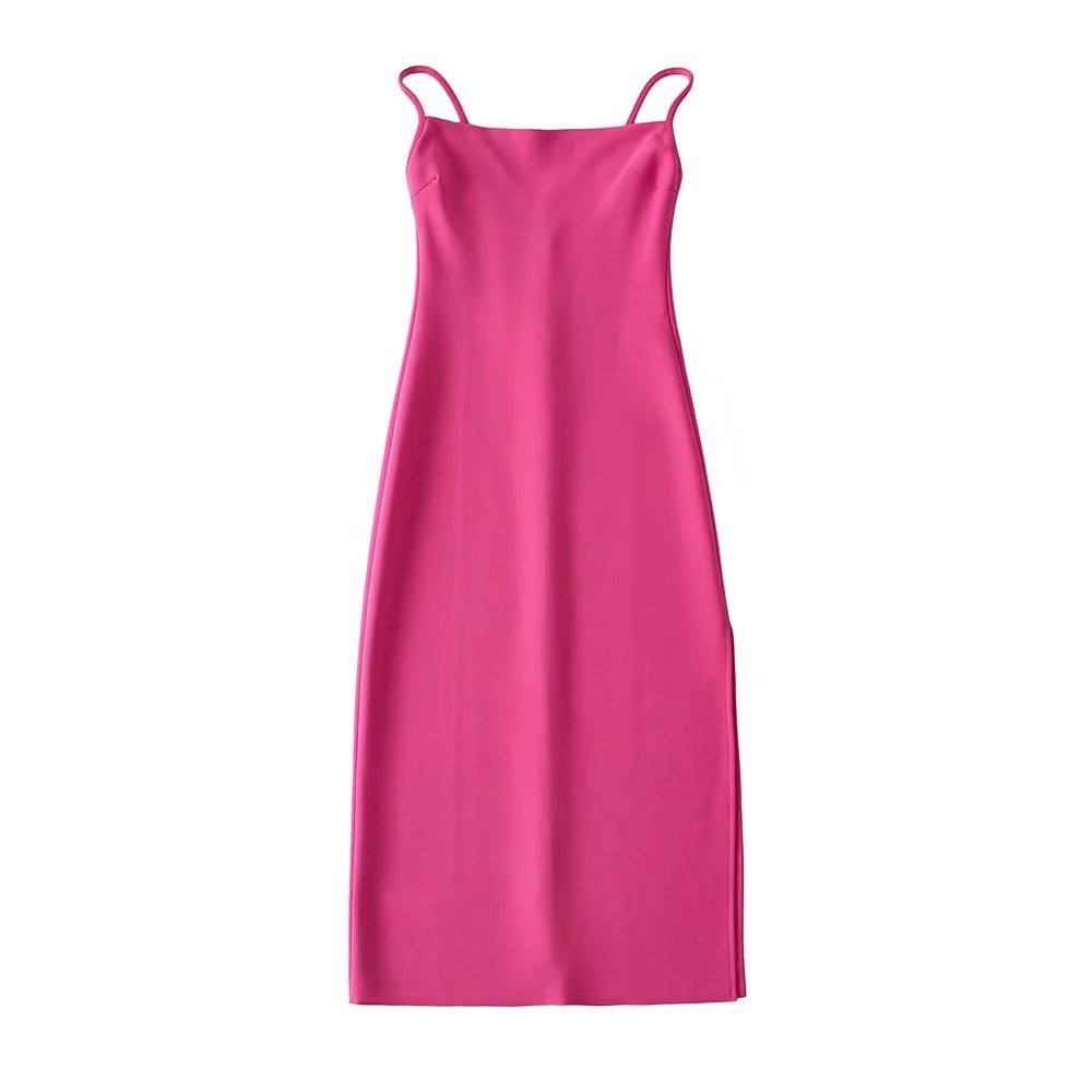 maoxiangshop-shop telenovela dress to impress INS Style French Style Flat Strap Dress Women's Summer New off-the-Shoulder Sexy Split Dress Long Skirt