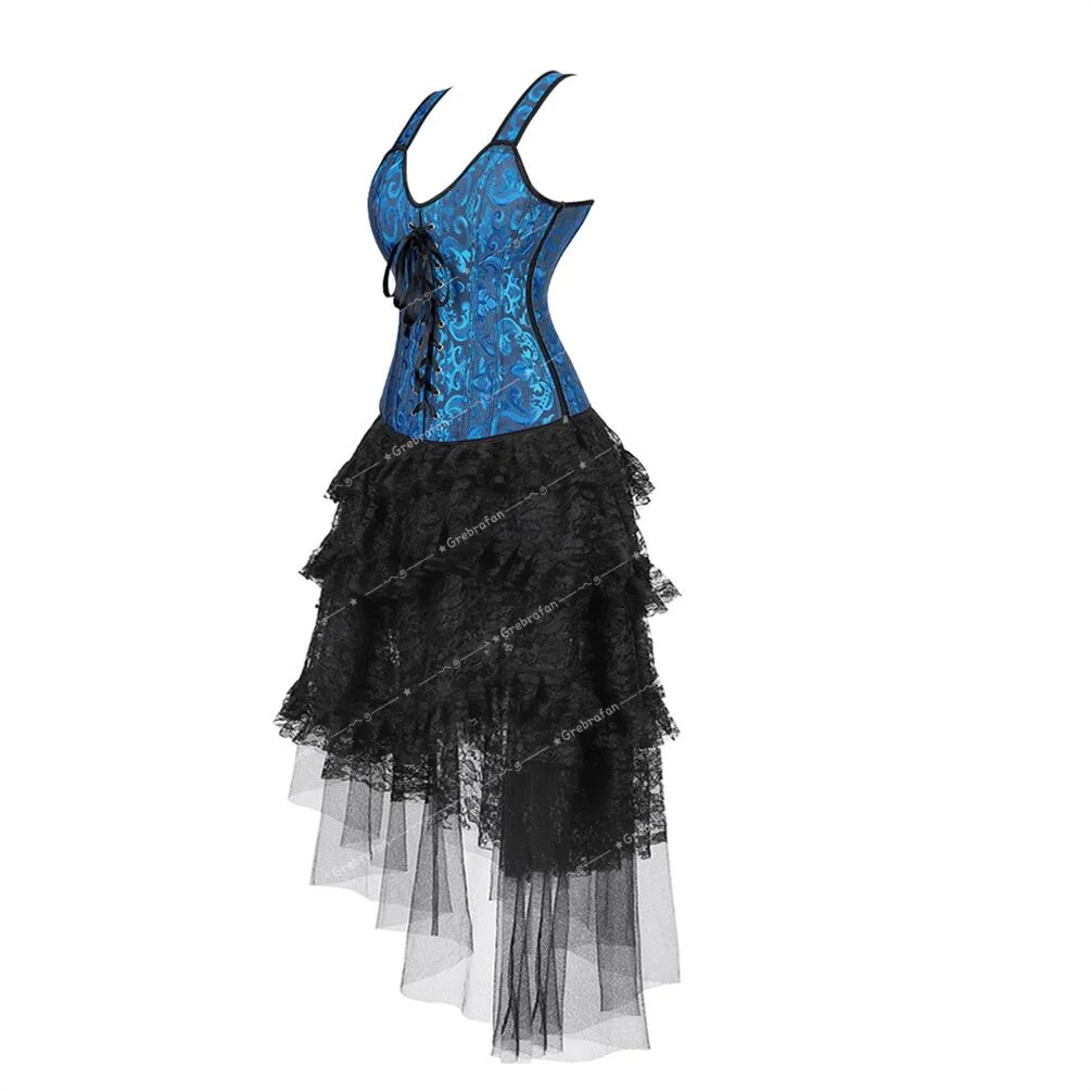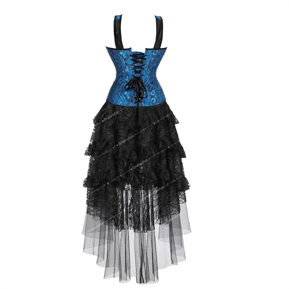 maoxiangshop - Steampunk Corset Skirt Bridal Lace Strap Bustiers with Gothic Tulle Dress Rave Outfits Evening Party Costumes Plus Size