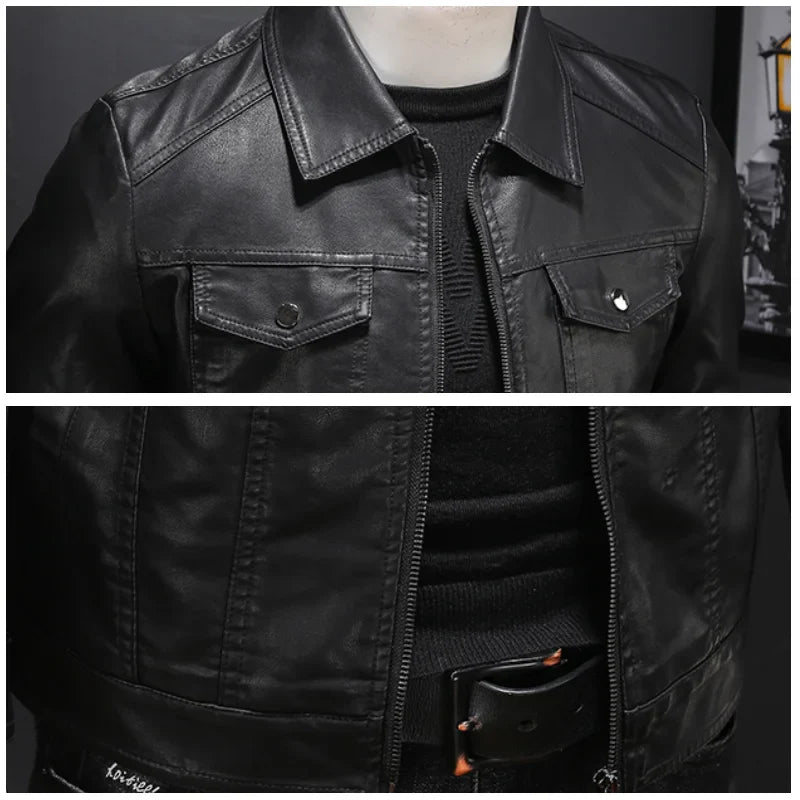 Men Luxury Black Faux Leather Jackets Men Zipper PU Coat Turn Down Collar Multi-pocket Slim Fit Clothing Man Plus Size 5XL-M