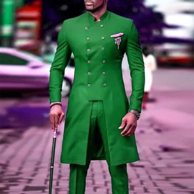 maoxiangshop Men Suits Dubai African Long Coat With Pants Formal Blazers Custom Made Double Breasted Jacket Slim Fit Ternos Tuxedo