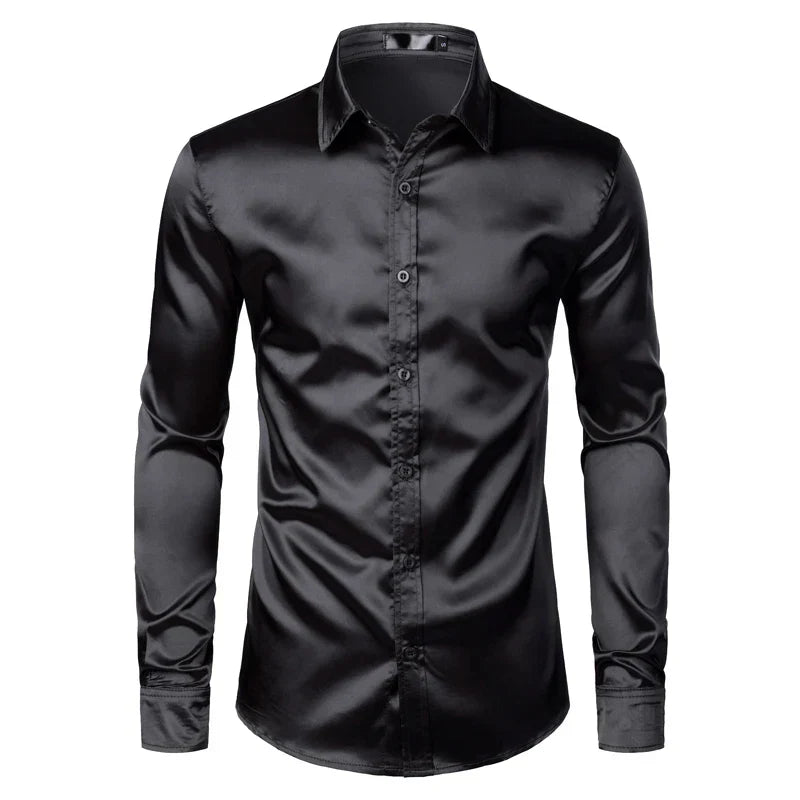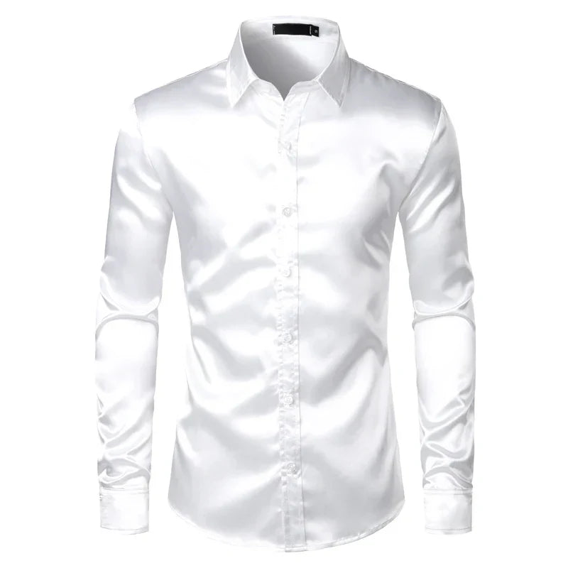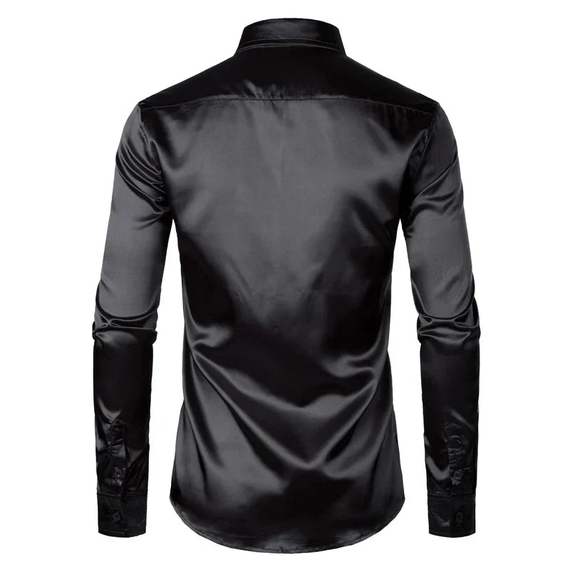 Men's Black Satin Luxury Dress Shirts Silk Smooth Men Tuxedo Shirt Slim Fit Wedding Party Prom Casual Shirt Chemise Homme