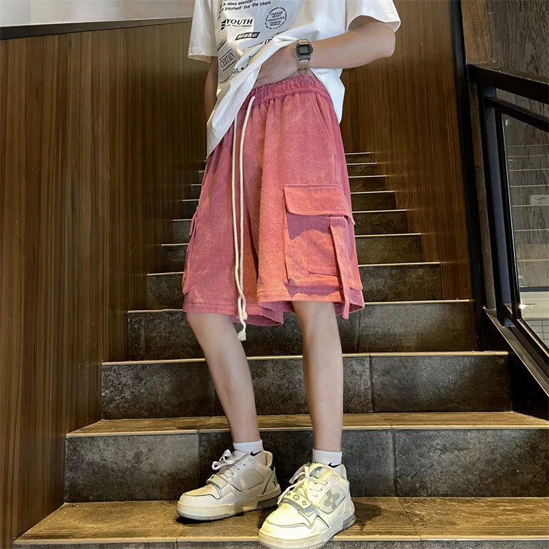 Men's Cargo Shorts Loose Casual Big Pockets Overalls Summer Comfortable Drawstring Pants Outdoor Streetwear Short Pants
