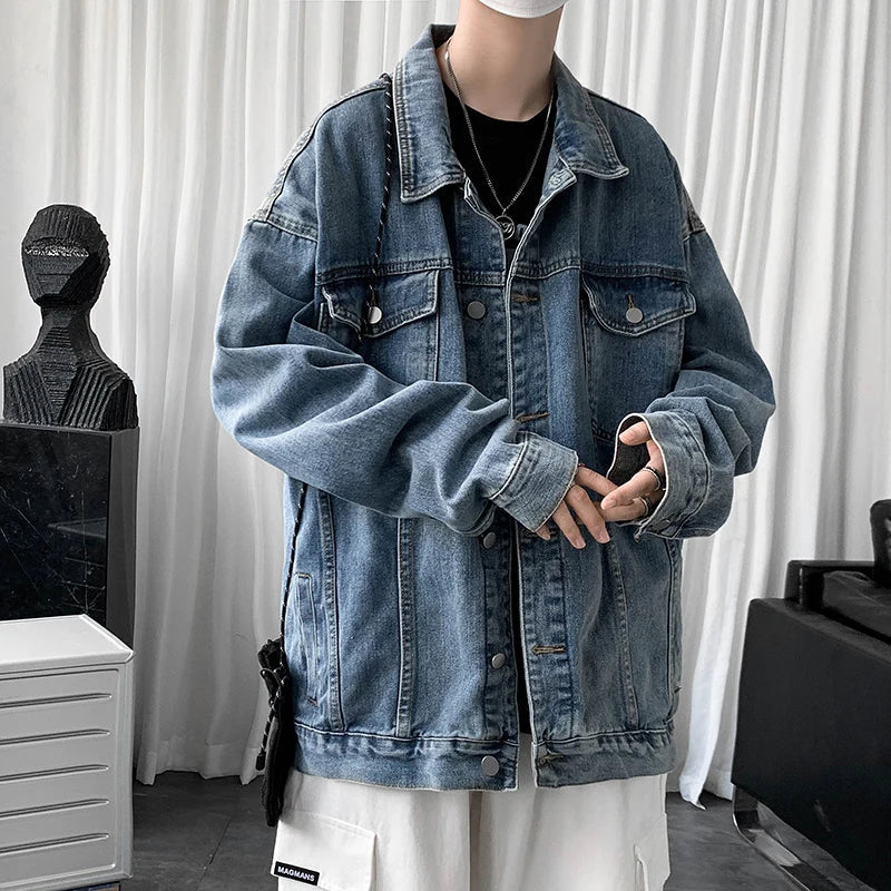 maoxiangshop Men's Clothing New Baggy Denim Jacket Solid Color Casual Korean Fashion Harajuku Oversized Blue Streetwear Male Button Coat