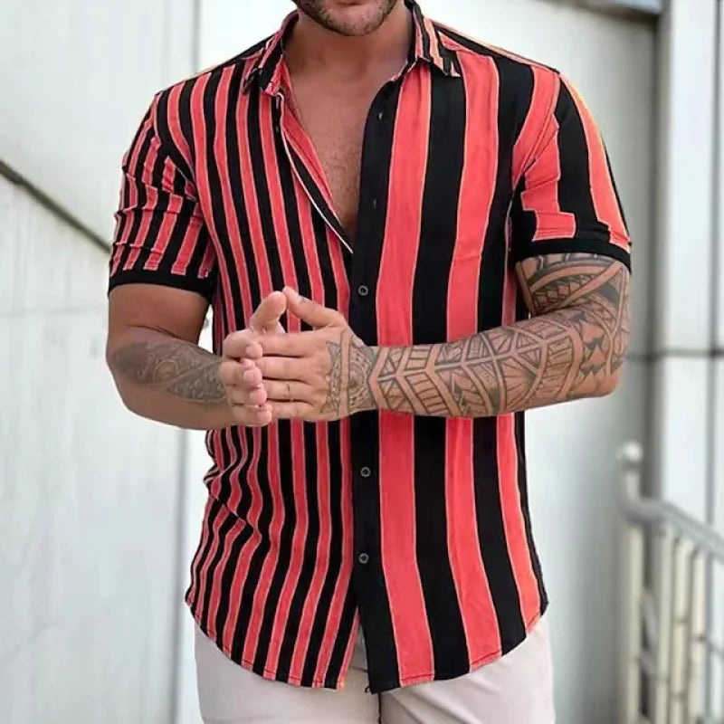 maoxiangshop Men's Shirts Holiday Hawaiian Beach Shirts Striped Print Tops Business Casual Cropped Oversized T-Shirts 5XL Designer Clothing