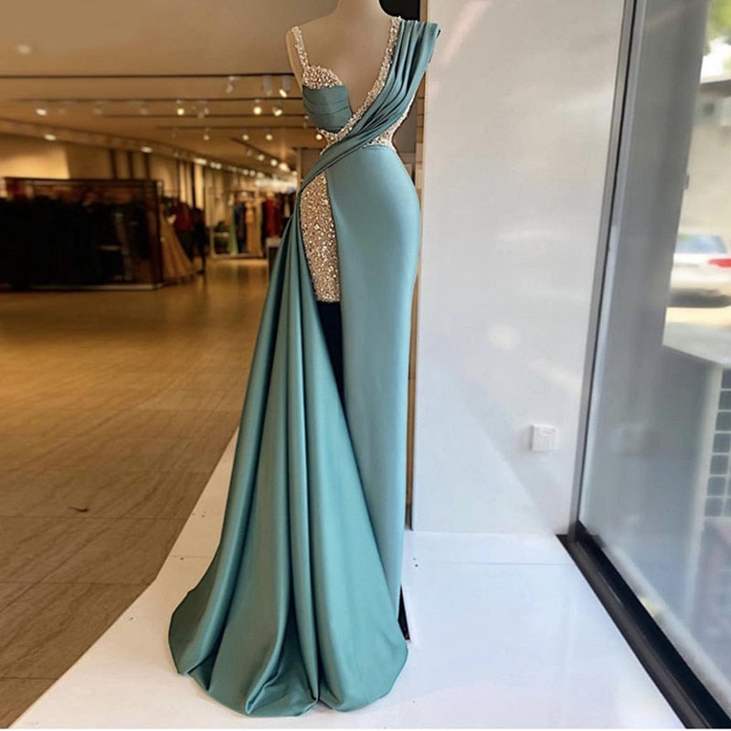 maoxiangshop Mermaid Prom Dresses V Neck Crystal Dubai Glitter Robe De Soiree Arabic Evening Dress Women Party Gowns Vestidos