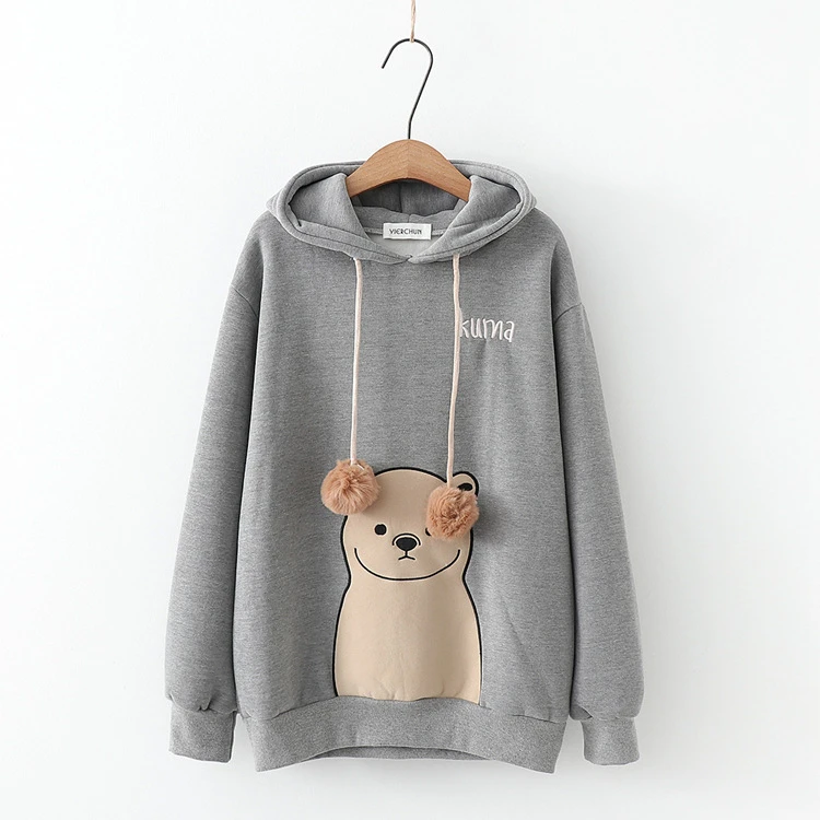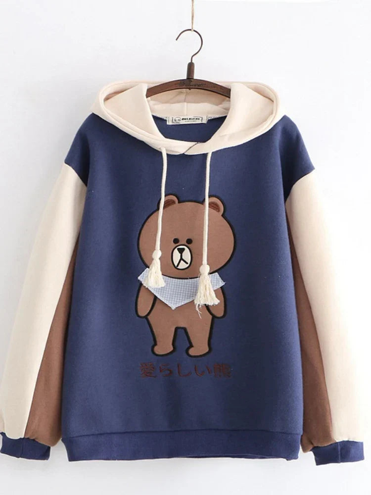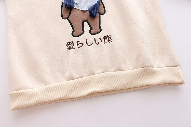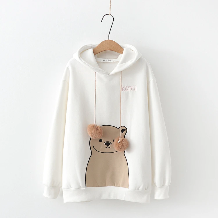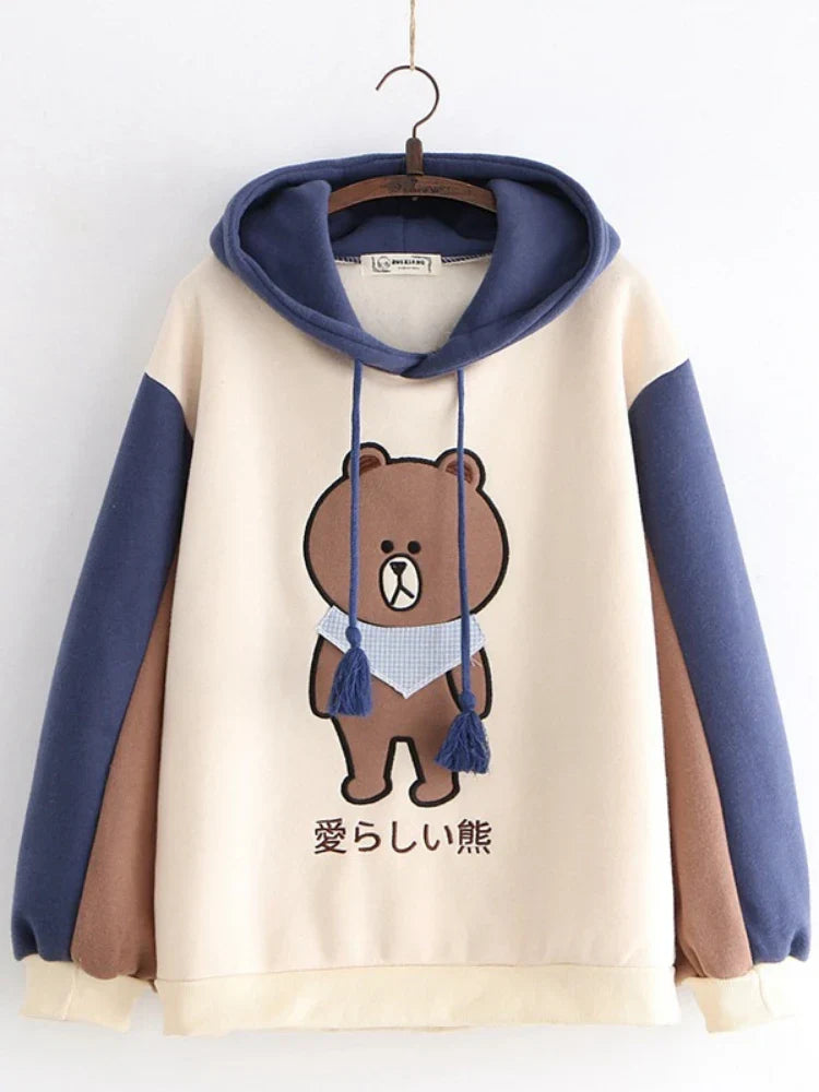 Merry Pretty Women Harajuku Cartoon Bear Embroidery Hooded Sweatshirts Winter Plus Velvet Cute Hoodies Sweatshirt Tracksuit