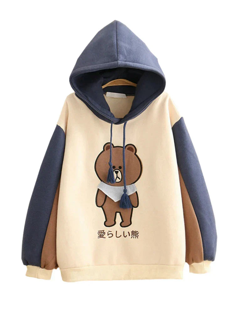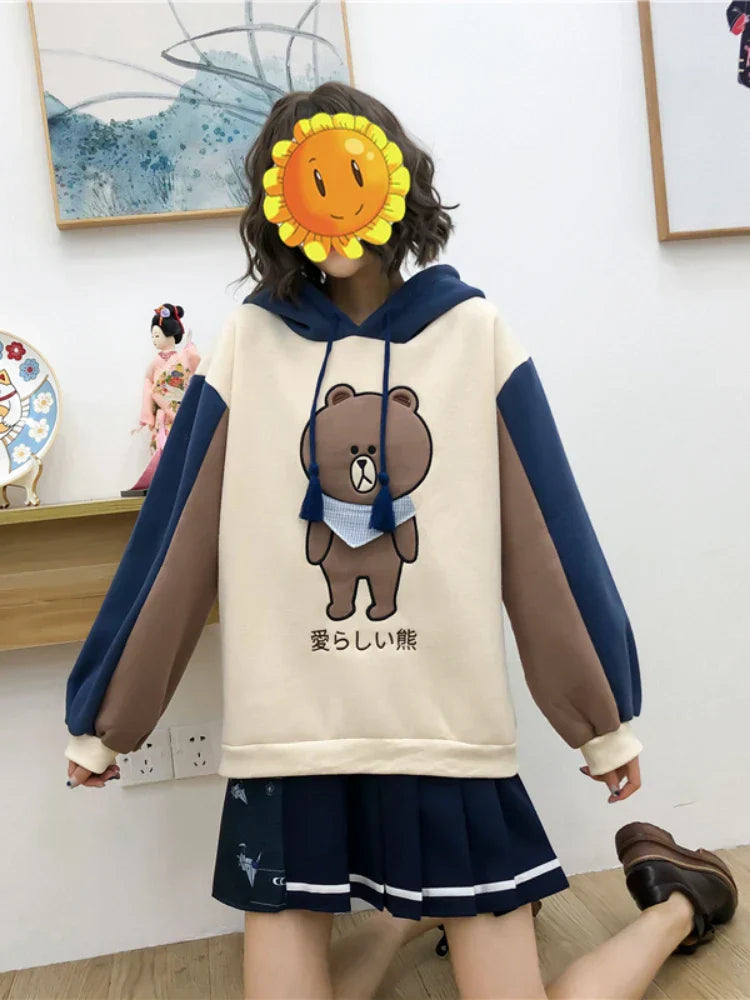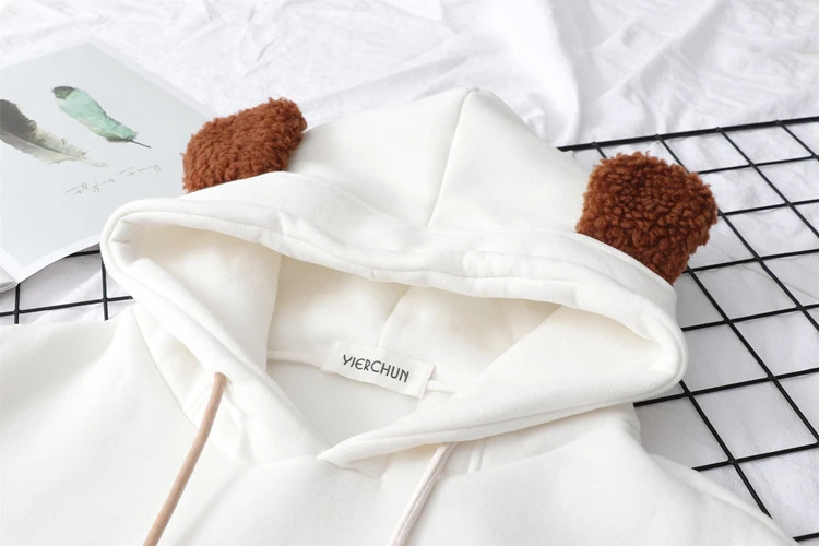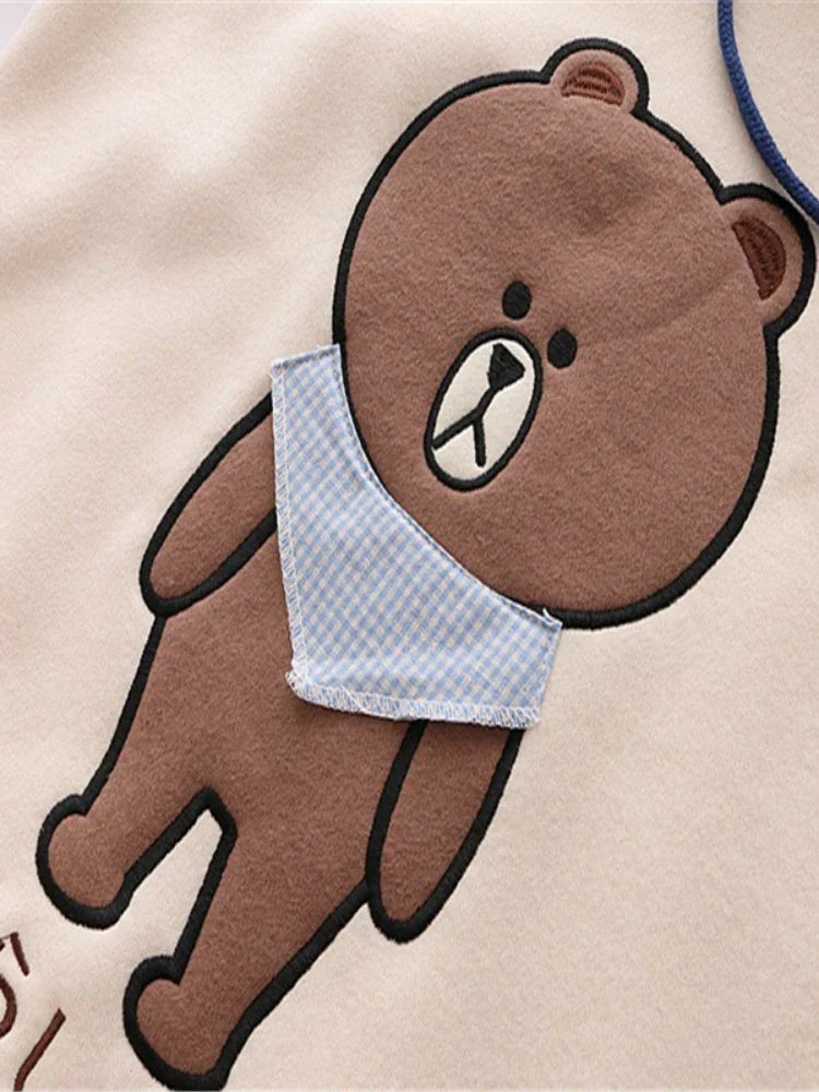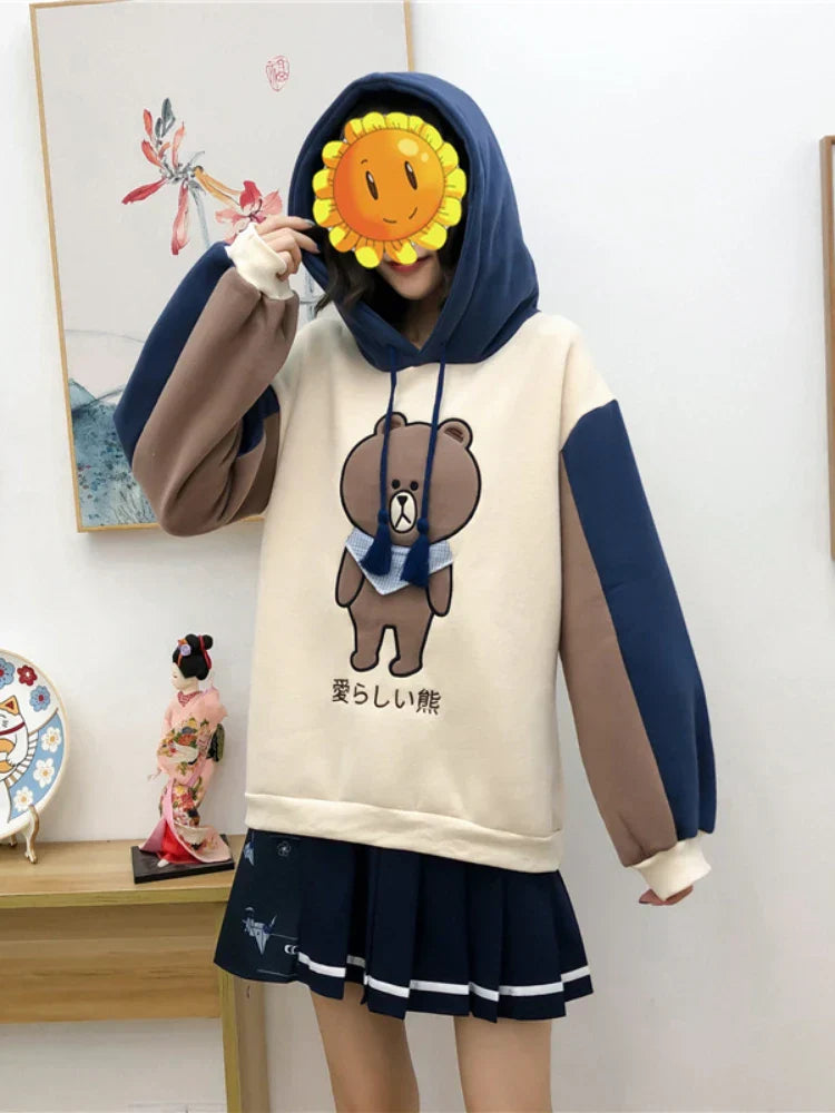 Merry Pretty Women Harajuku Cartoon Bear Embroidery Hooded Sweatshirts Winter Plus Velvet Cute Hoodies Sweatshirt Tracksuit