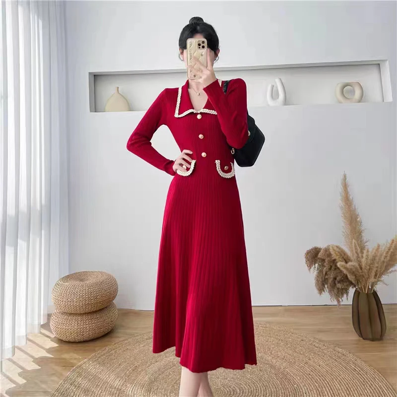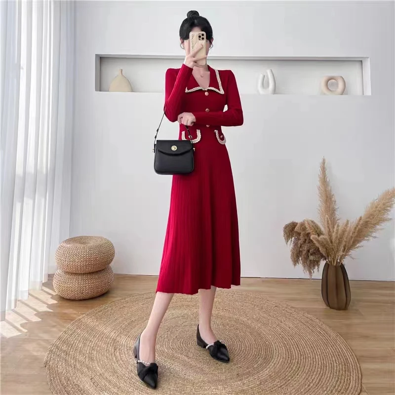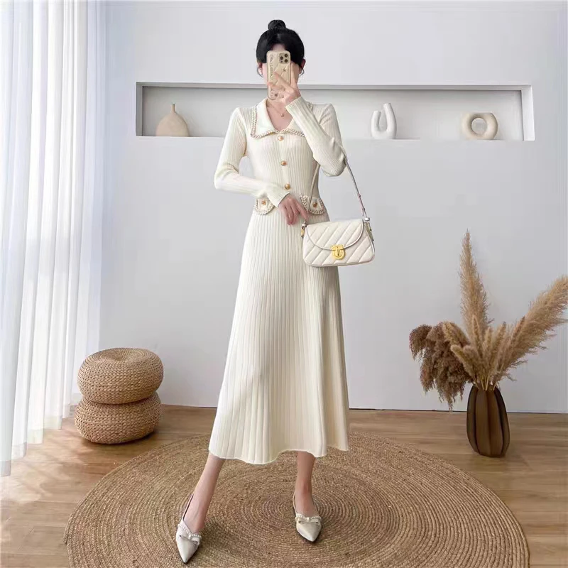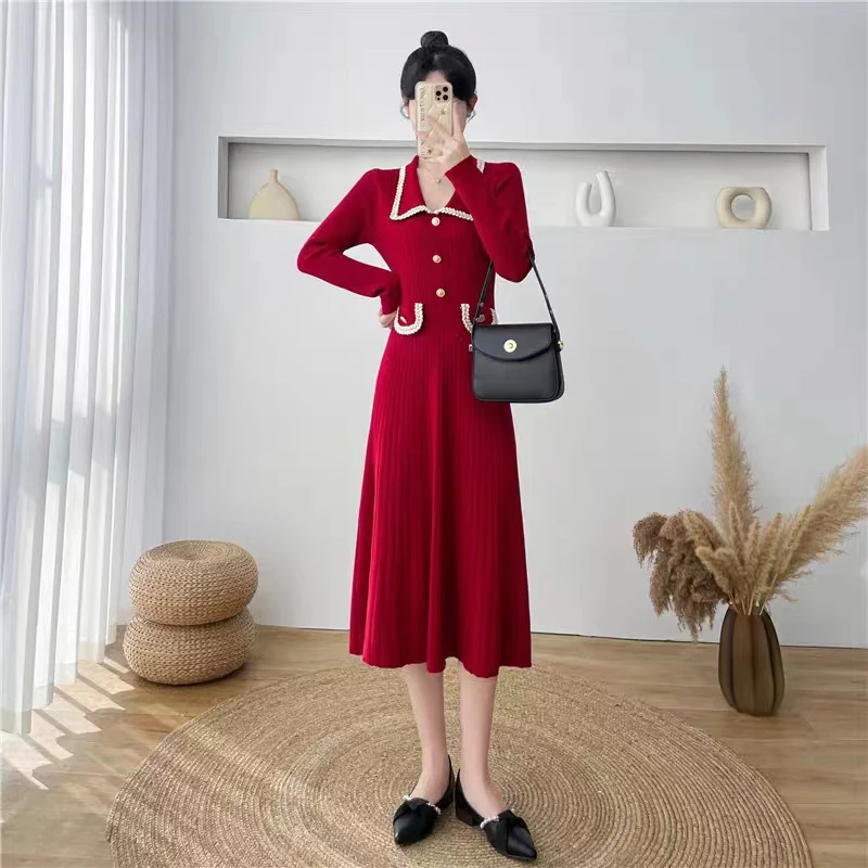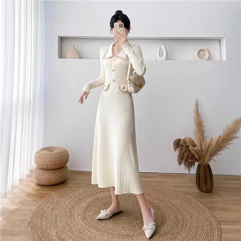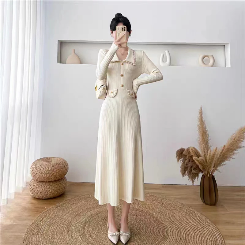 Elegant Knitted Midi Dress Women Black Long Sleeve Sweater Dresses Fall Winter Ladies Korean Fashion Bodycon Vestidos New