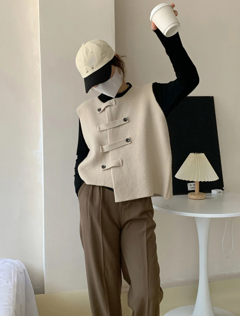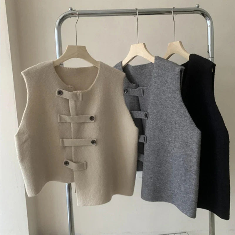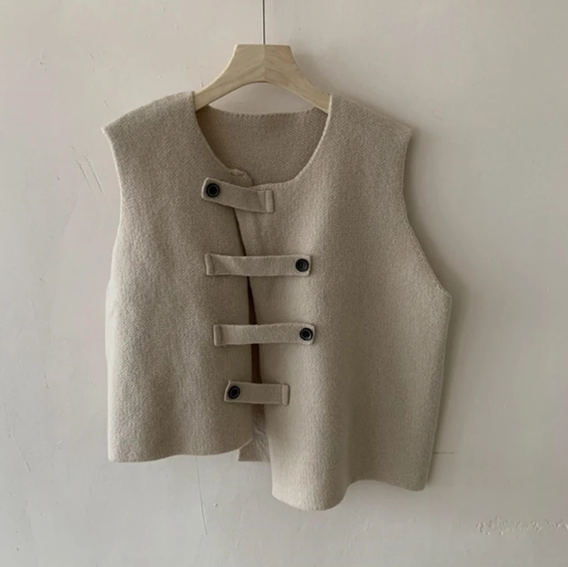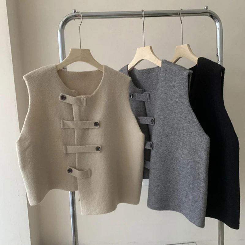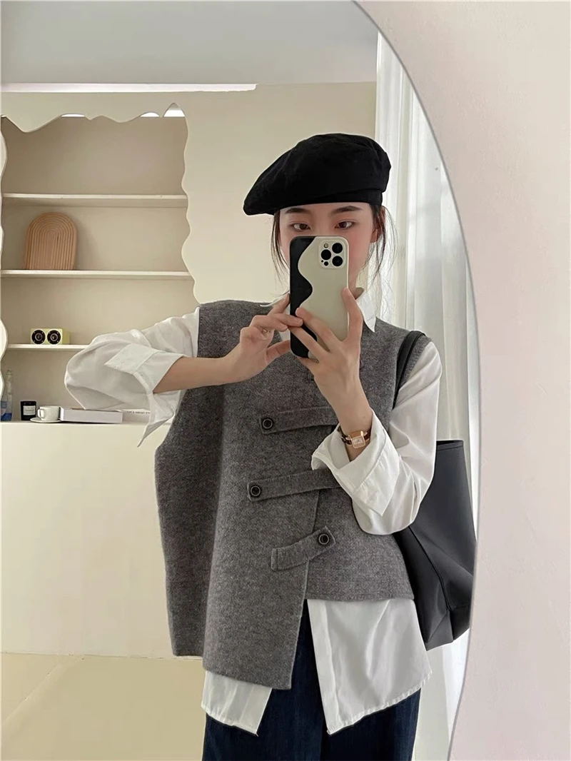 Irregular Sweater Vest Women Preppy Solid Chic Button Knit Waistcoat Korean Office Lady Elegant Knitwear Casual Top New
