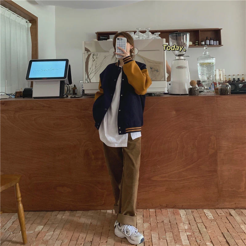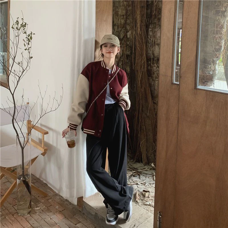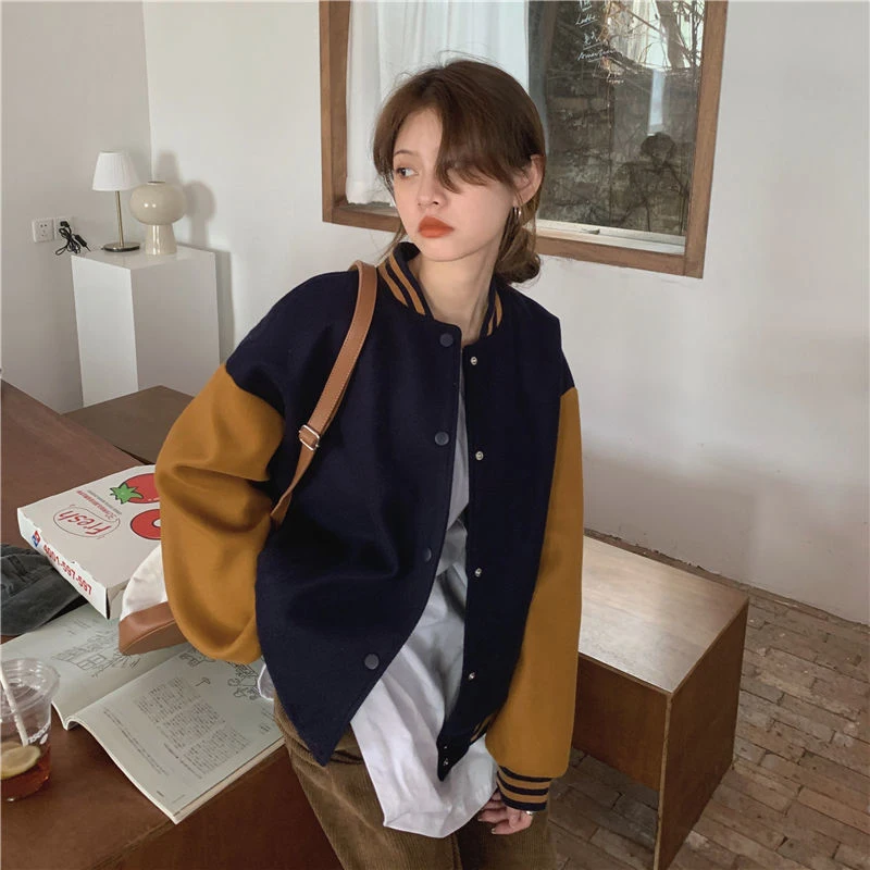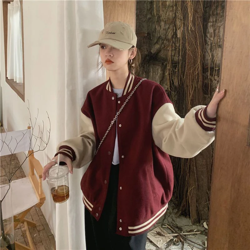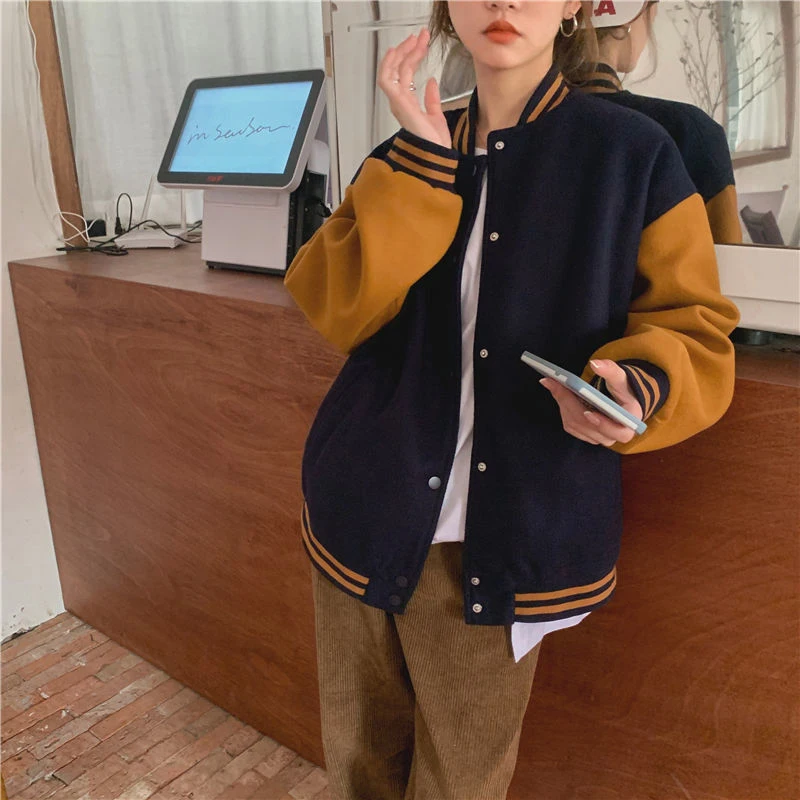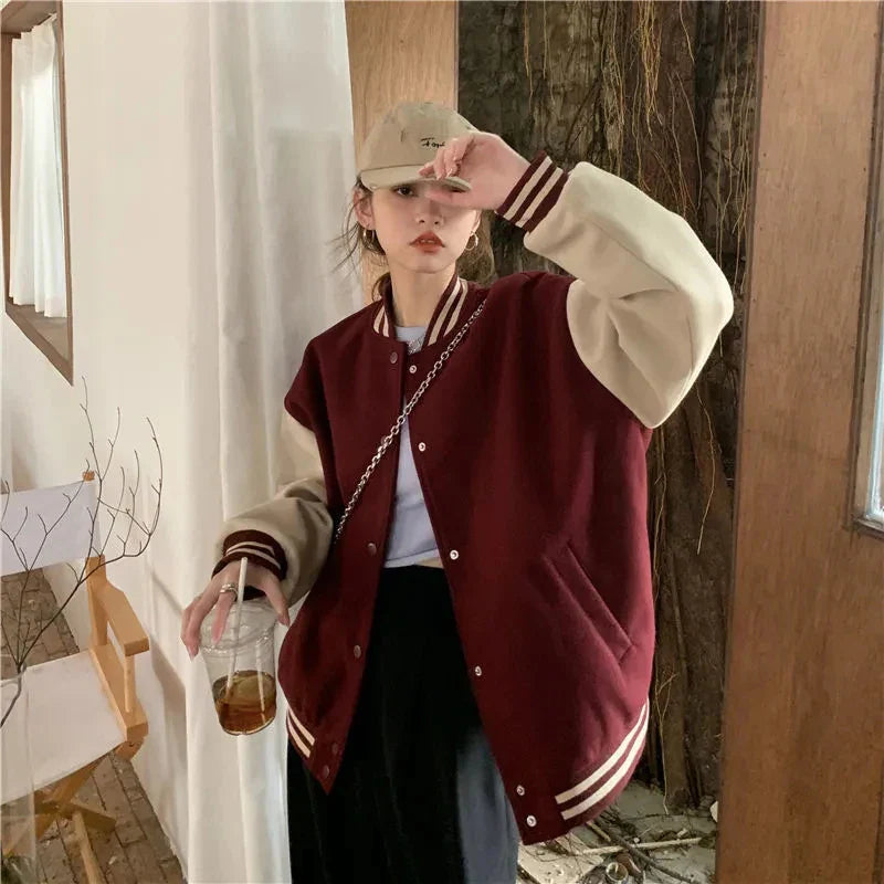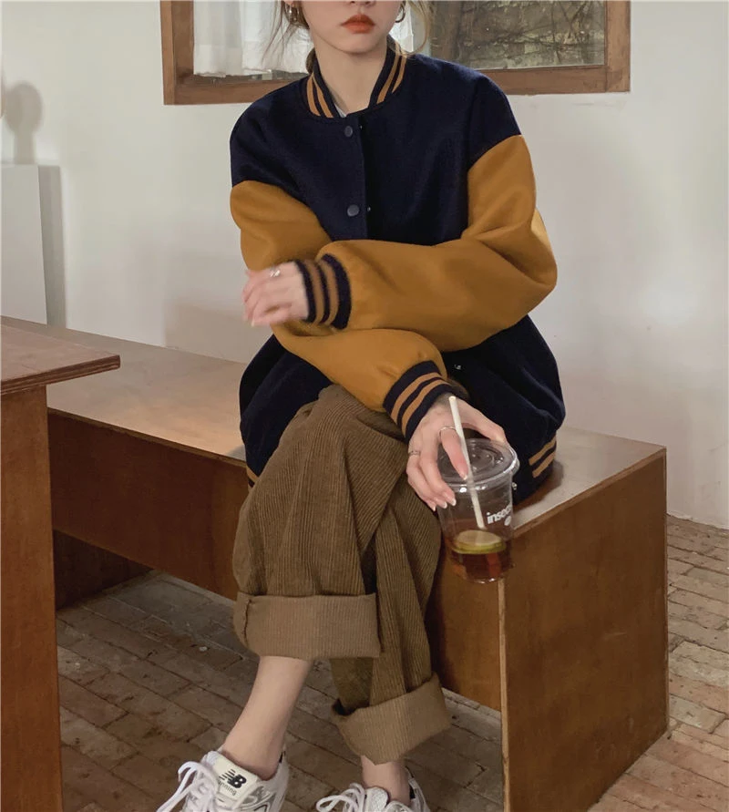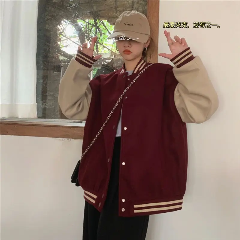 Streetwear Y2K Baseball Jackets Women Oversized Patchwork Bomber Coat Bf Harajuku Preppy Korean Casual All Match Outerwear