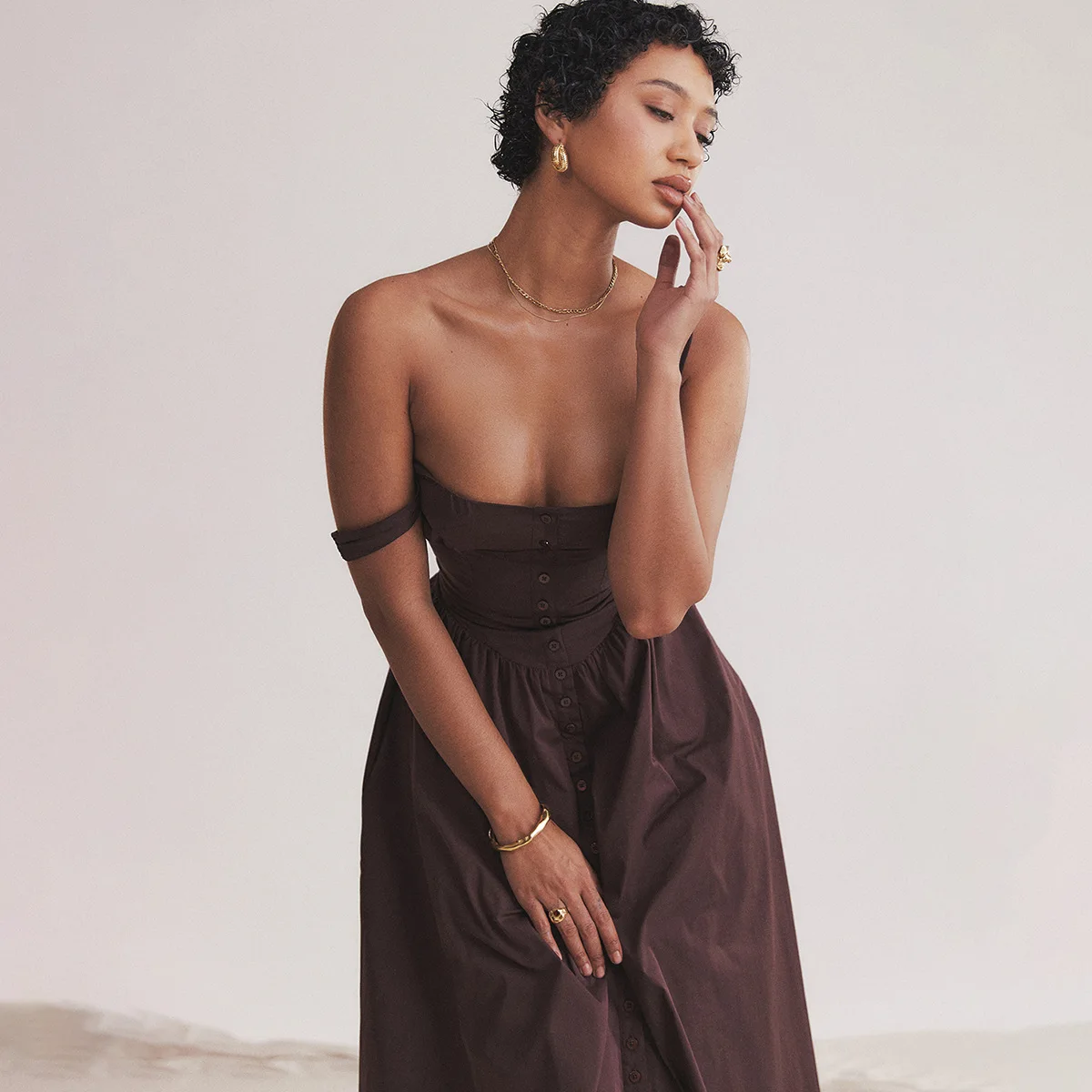 Mingmignxi Autumn Dress Woman 2023 Trendy Midi Spaghetti Strap Dress Brown Long One-piece Dress Gown New in Sexy Birthday Dress